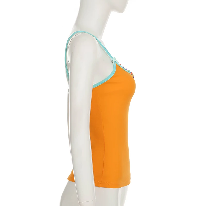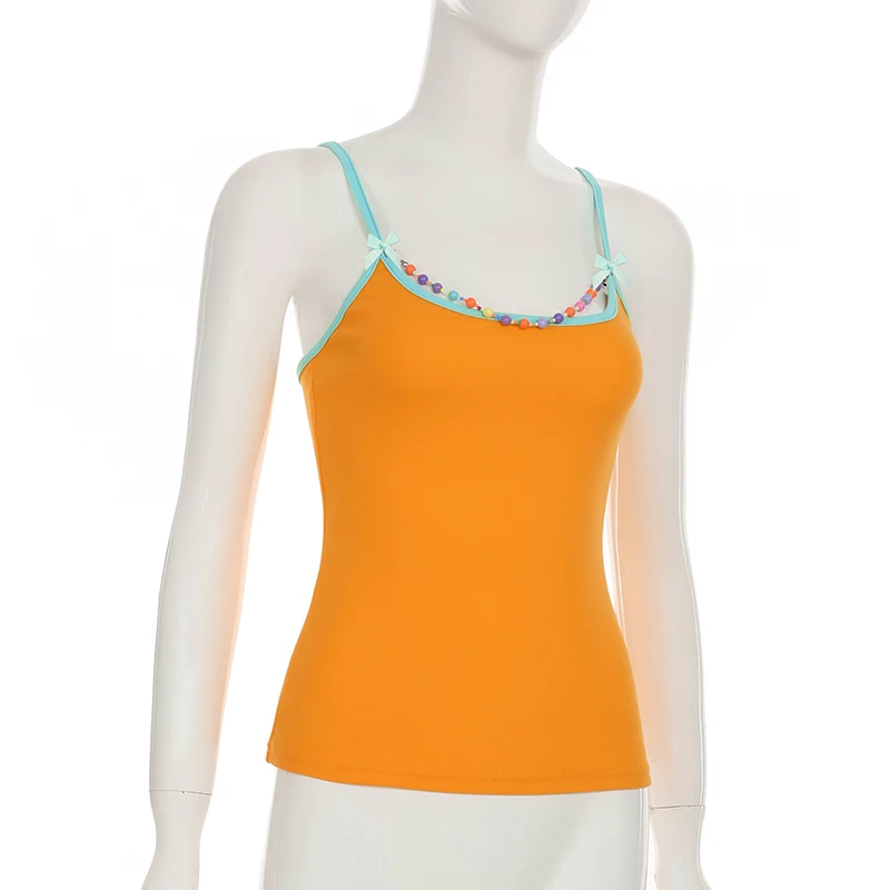 Cyflymder Basic Sexy Slim Camis Tops Casual Bow Beads Slash Neck Sleeveless Tank Tops Women 2025 Summer Fashion Streetwear Ladies