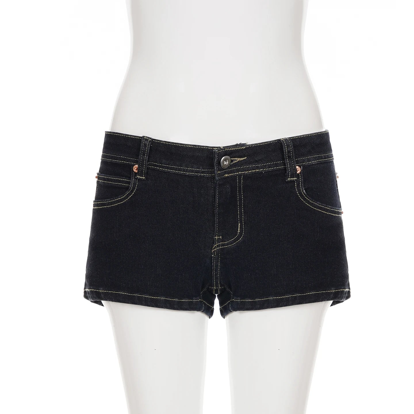 Cyflymder Basic Slim Big Pockets Denim Shorts Casual Low-Waisted Jeans Shorts Women Summer Elegant Fashion Streetwear Ladies