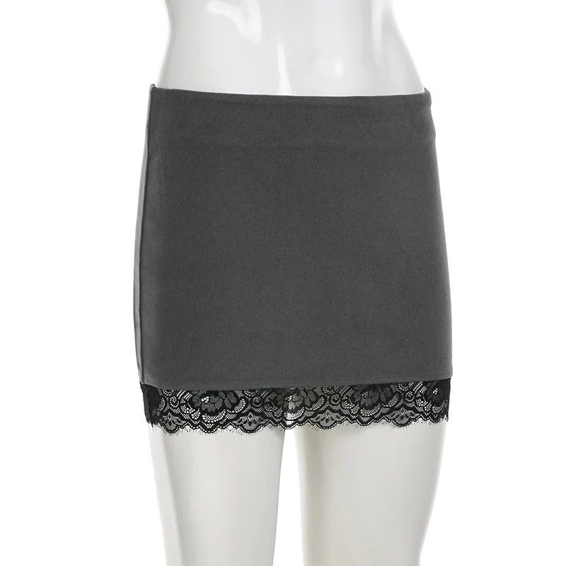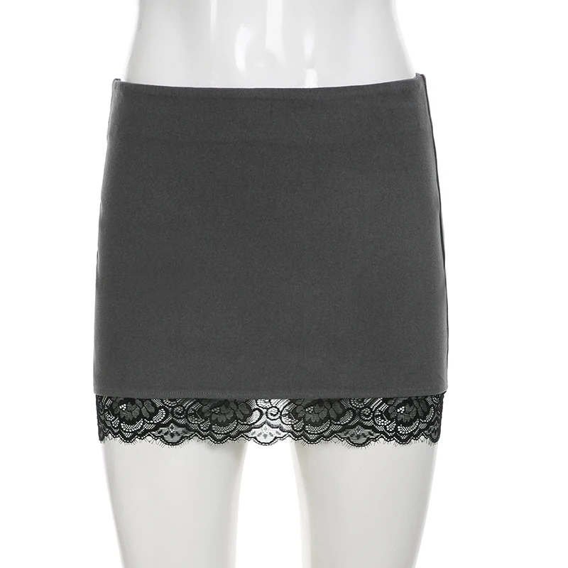 Cyflymder Basic Slim Lace Trim Bodycon Skirts Casual Sexy Solid Low-Waist Supper Mini Skirts Women 2025 Summer Fashion Streetwear