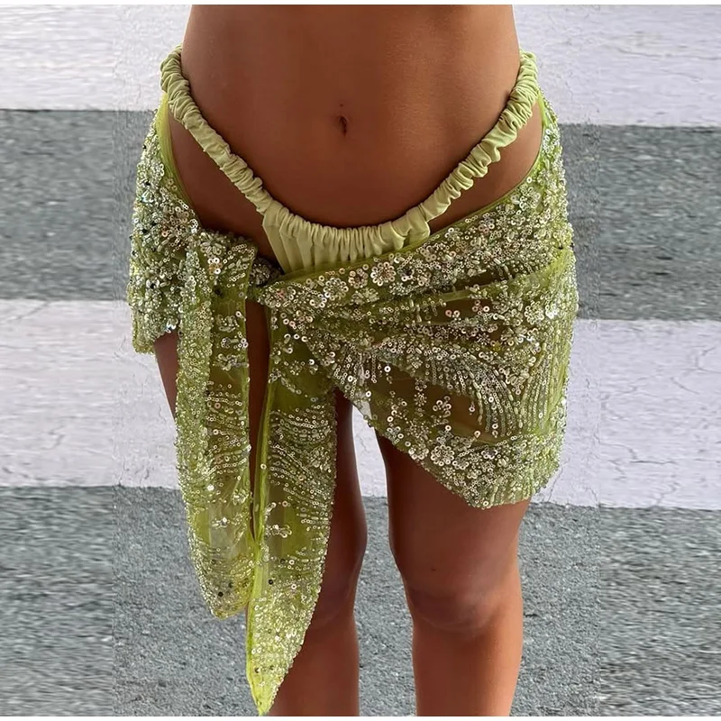 Cyflymder Bead Embroidery Vest Lace Up Skirt Women Sequins Halter Backless Tank Tops Sexy Mini Skirt Seaside Street See Through Evening