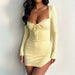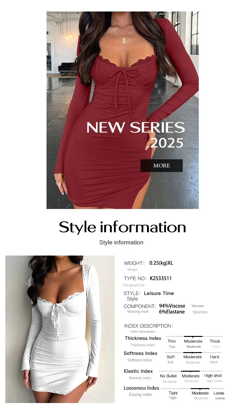 Cyflymder Phantasy Beautiful Women's Dresses Y2K Sexy Long-Sleeved Bodycon Skirt Dress Fashion Low-Cut Lace Trim Slim Fit Slit Dress