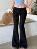 Cyflymder Black Knit Flared Leggings Women Kawaii Ruched Patchwork Low Rise Skinny Casual Pants for Summer Streetwear y2k Trousers