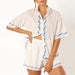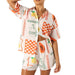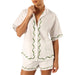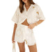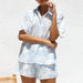 Cyflymder Boho Beach Style 2 Piece Outfits Fashion Printed Short Sleeve Button Up Blouse Tops + Shorts Set Women Lounge Matching Beachwear