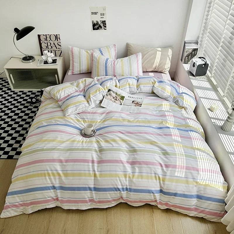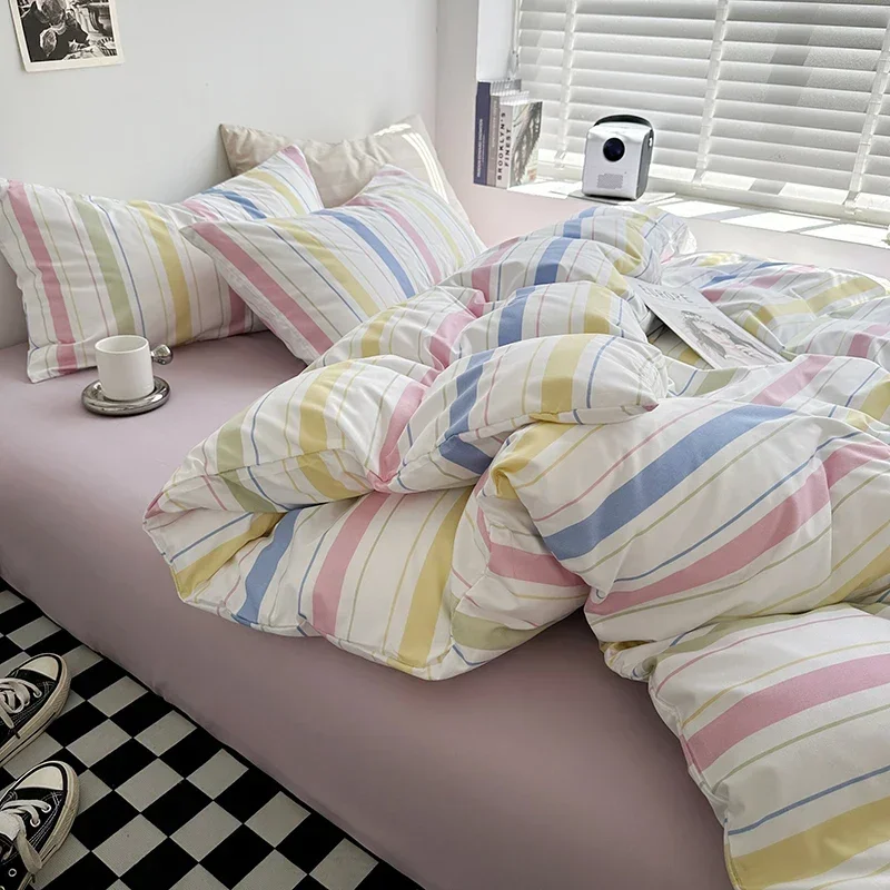 Cyflymder Bonenjoy Bed Linen Set Stripe Style Bedding Home Soft Bedsheet Set Single/Double/Queen/King Size Bedclothes juegos de sábanas