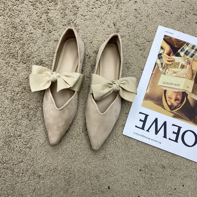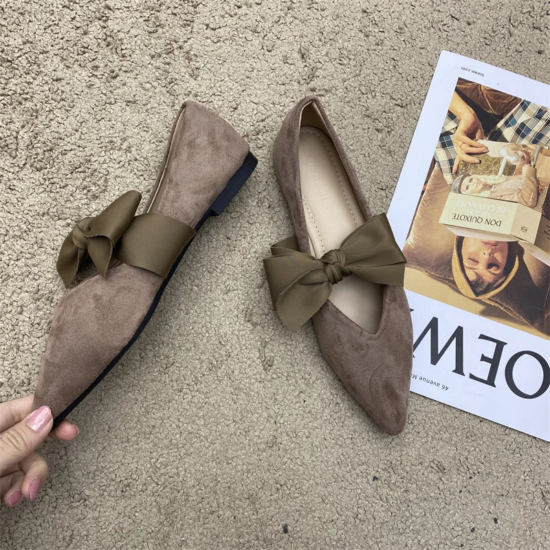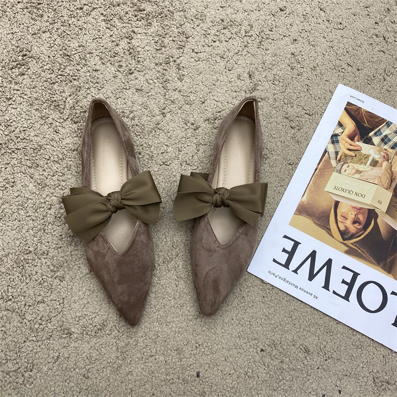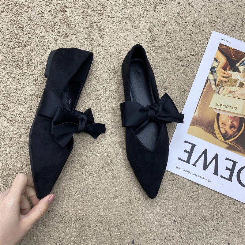 Cyflymder Bow Tie Mary Janes Shoes Women Elegant Daily Pointed Toe Flats Shoes Ladies Pu Leather Spring Autumn Casual Black Loafers New