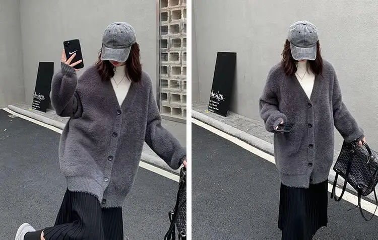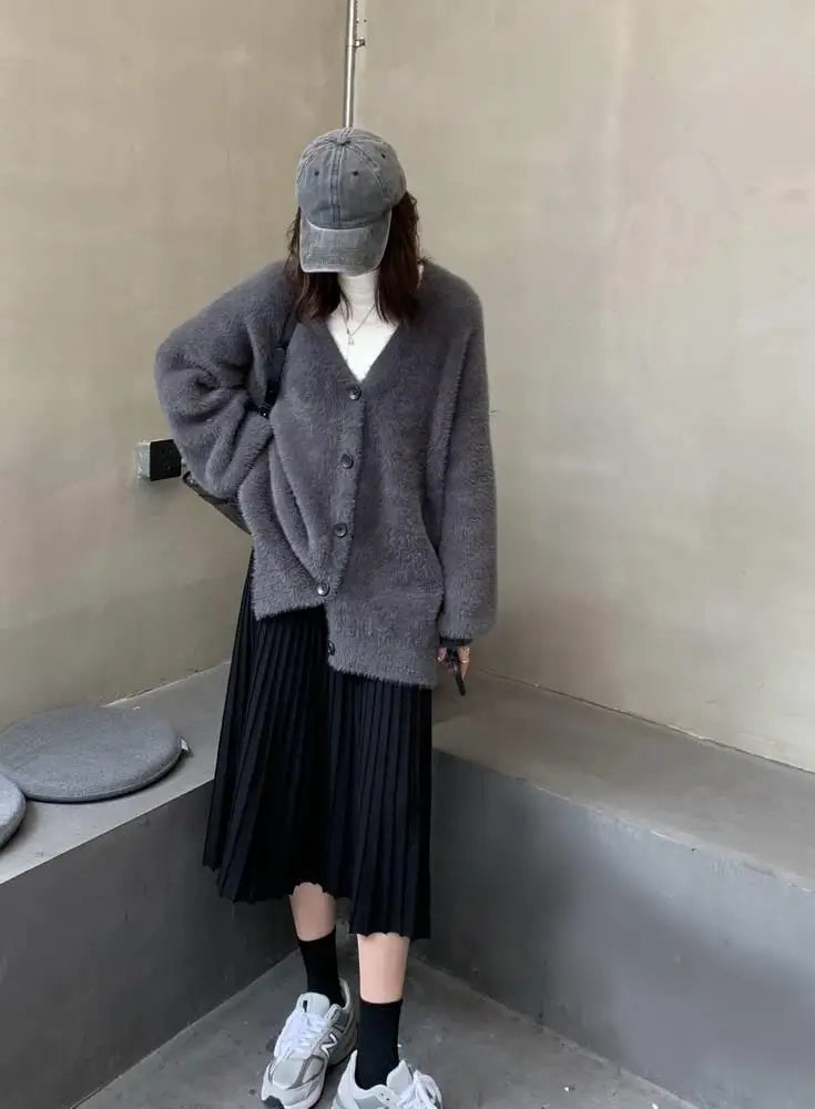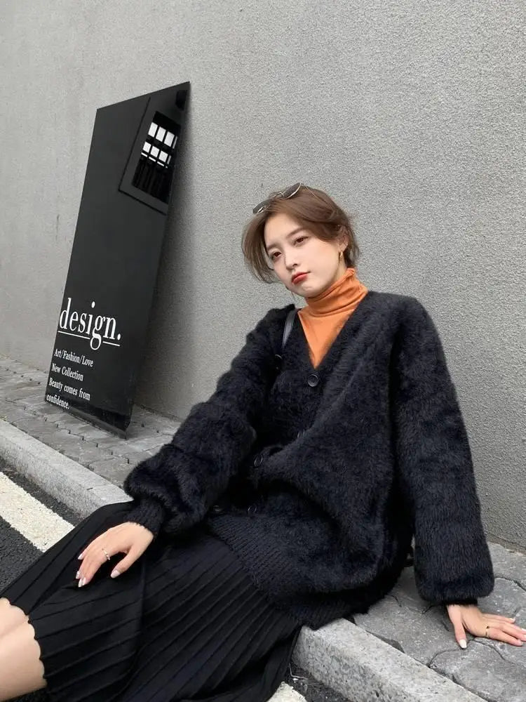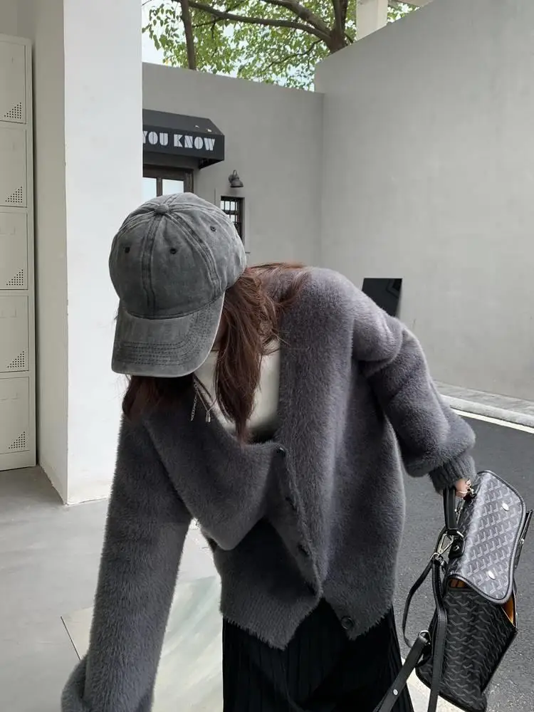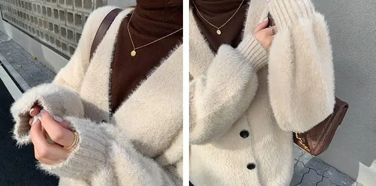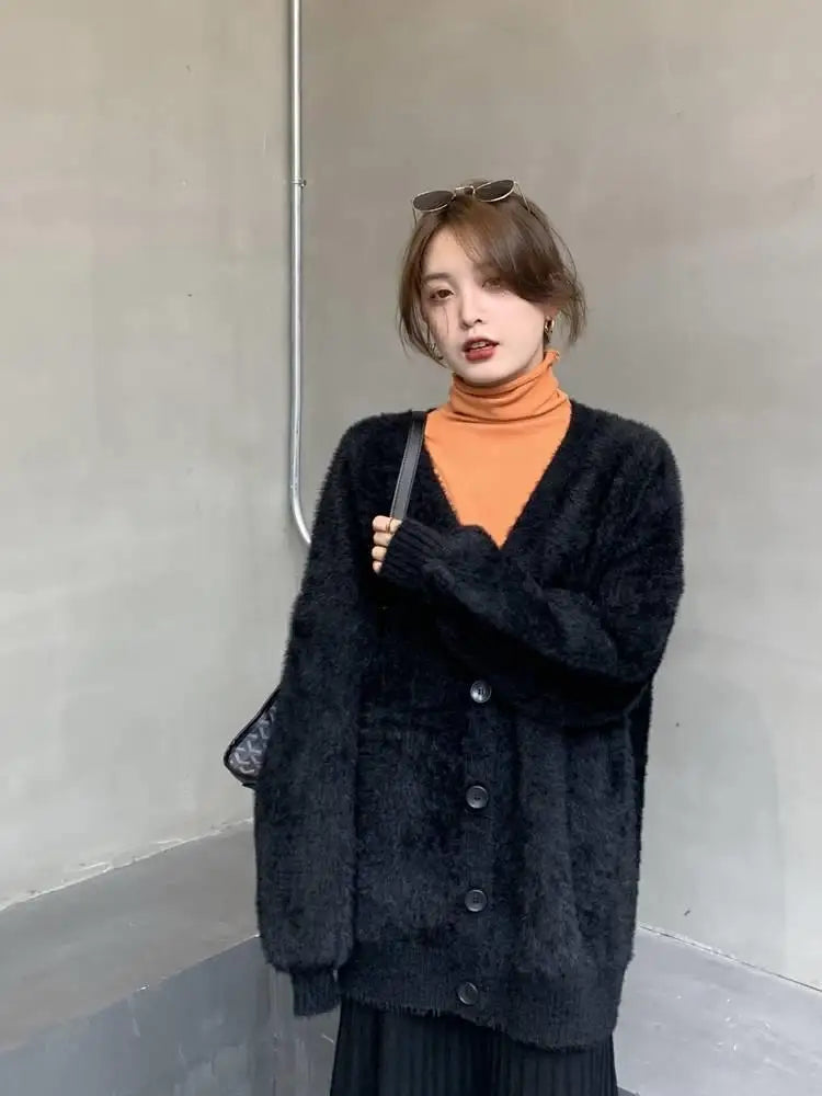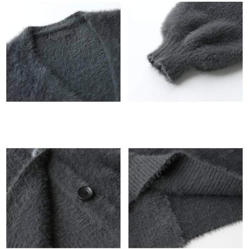 Cyflymder Cardigan Sweater Women V-neck Long Sleeve Top Solid Lazy Wind Soft Simple Warm Coat Vintage Single Breasted Knitwear Sweater