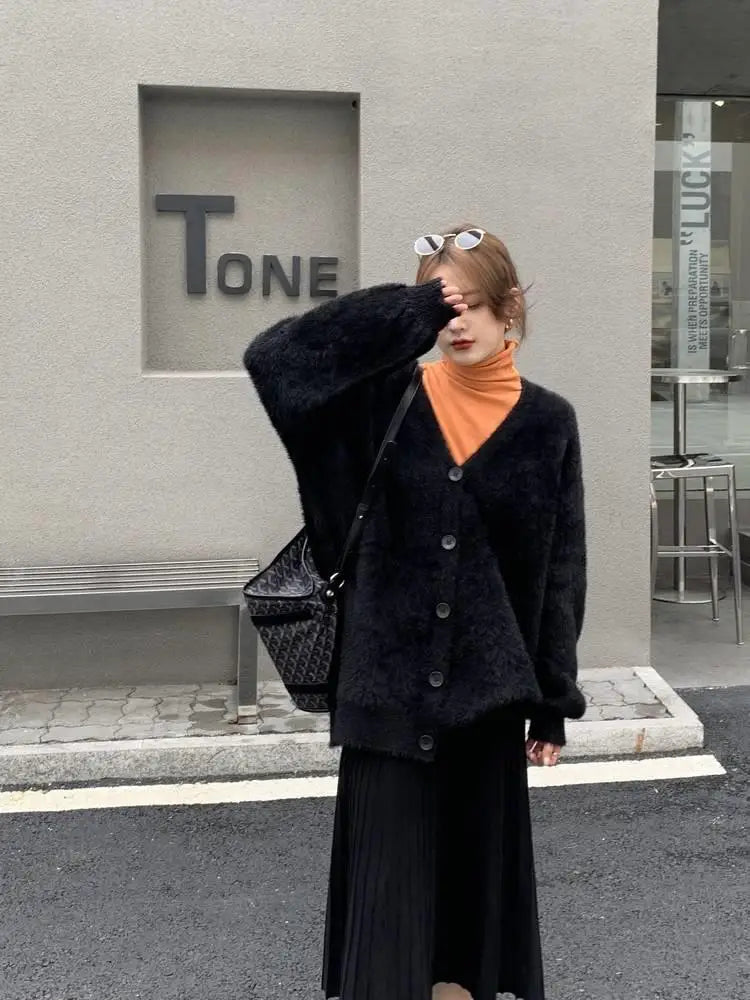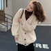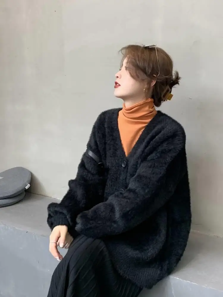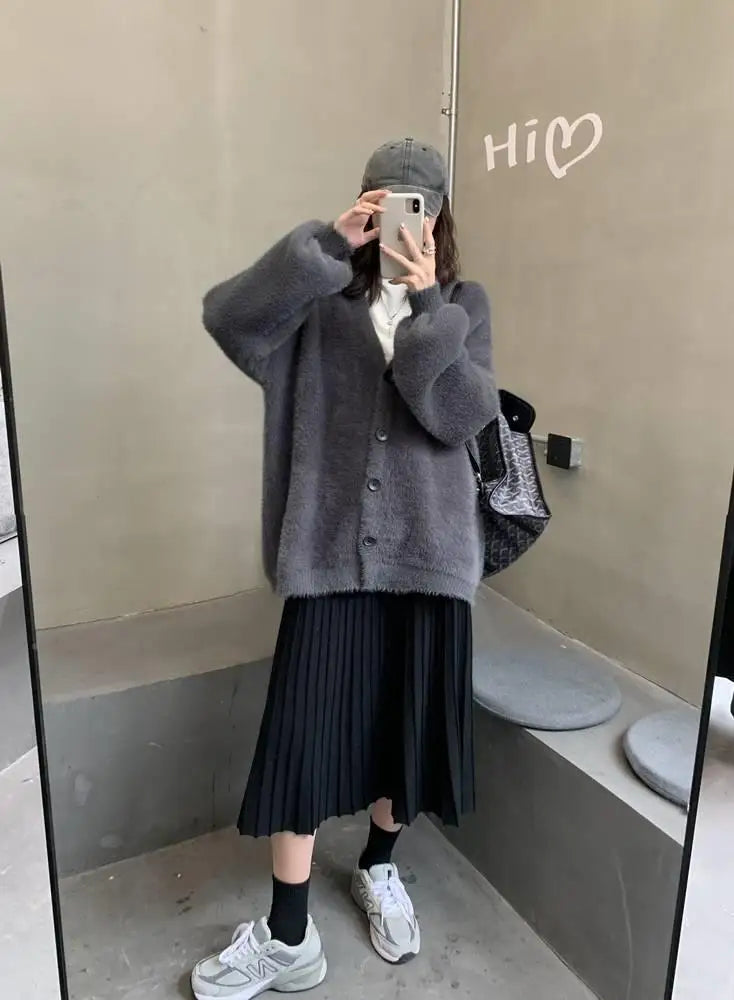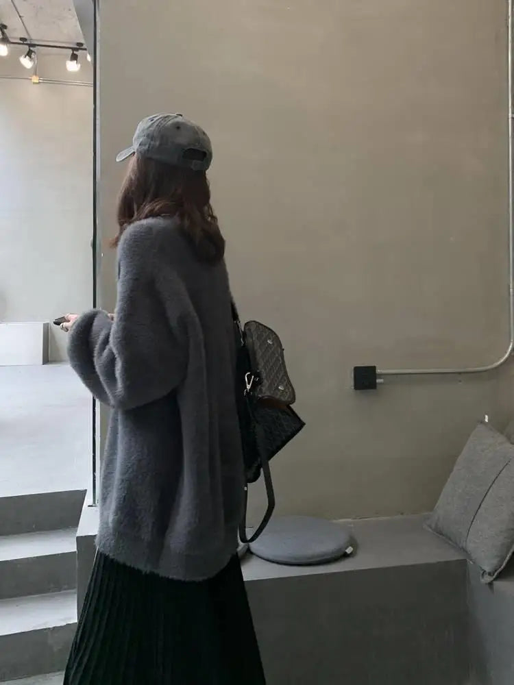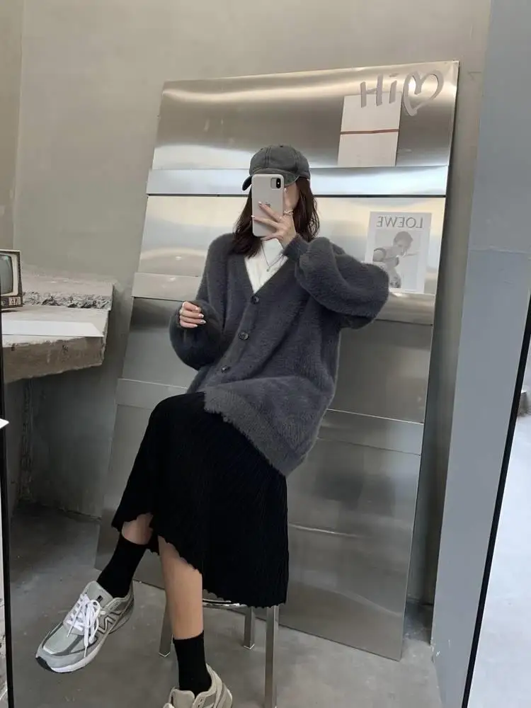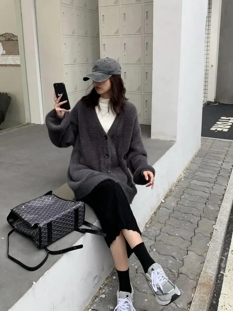 Cyflymder Cardigan Sweater Women V-neck Long Sleeve Top Solid Lazy Wind Soft Simple Warm Coat Vintage Single Breasted Knitwear Sweater