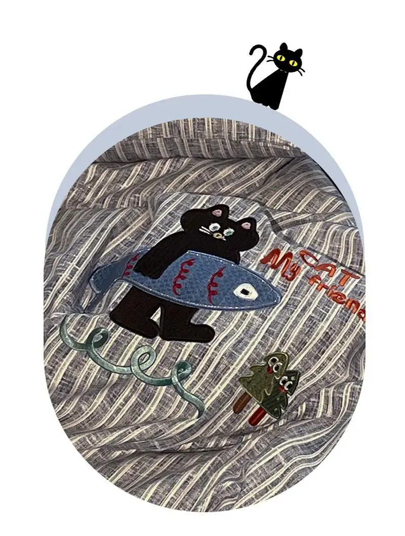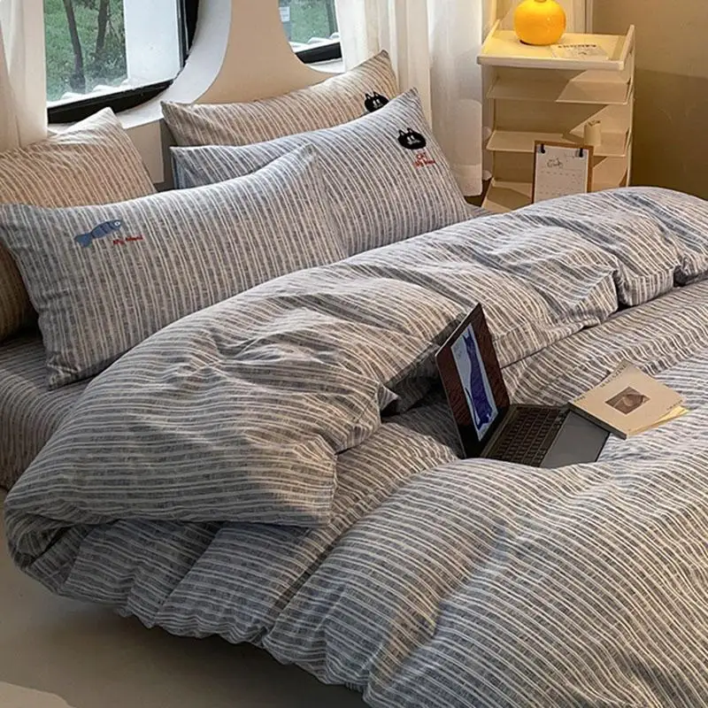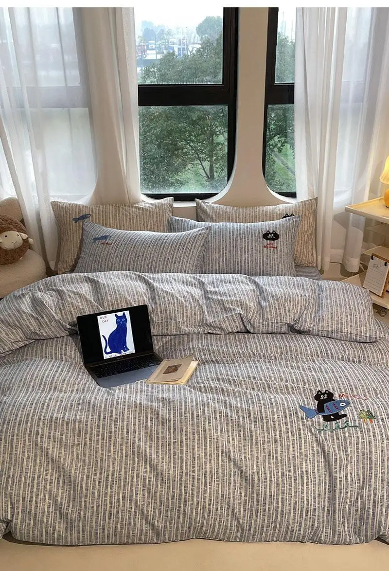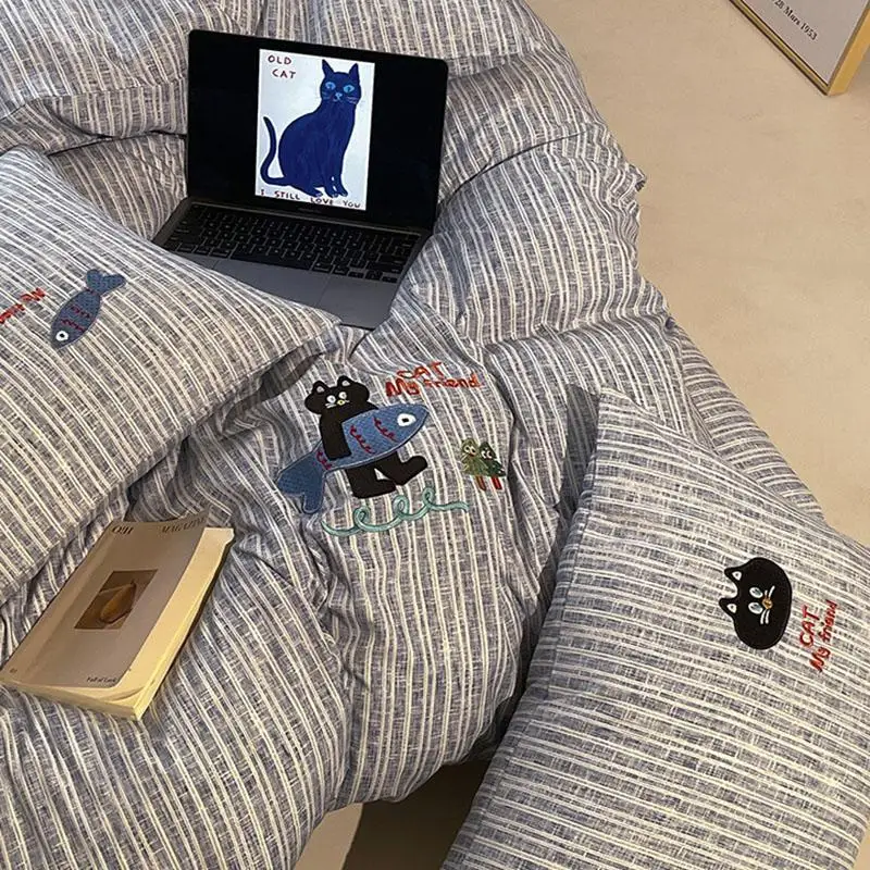 Cyflymder Cartoon Cotton-Linen Embroidery Bedding Sets High Quality Naked Sleeping Super Soft Bedsheet Set Queen King Quilt Kit for Adults