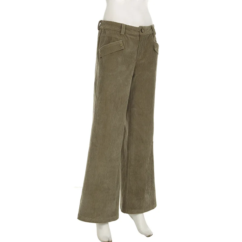 Cyflymder Casual Amercian Vinateg Autumn Winter Ccorduroy Pants Y2k Aesthetic Fashion All Match Trousers Harajuku Punk Rivet Nail Pants