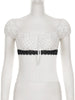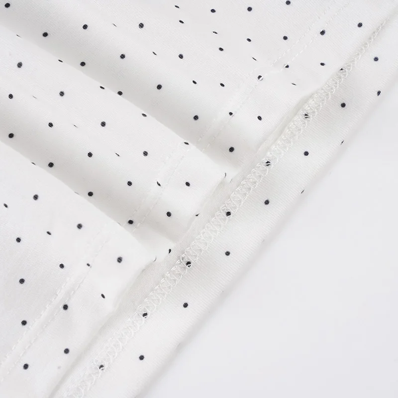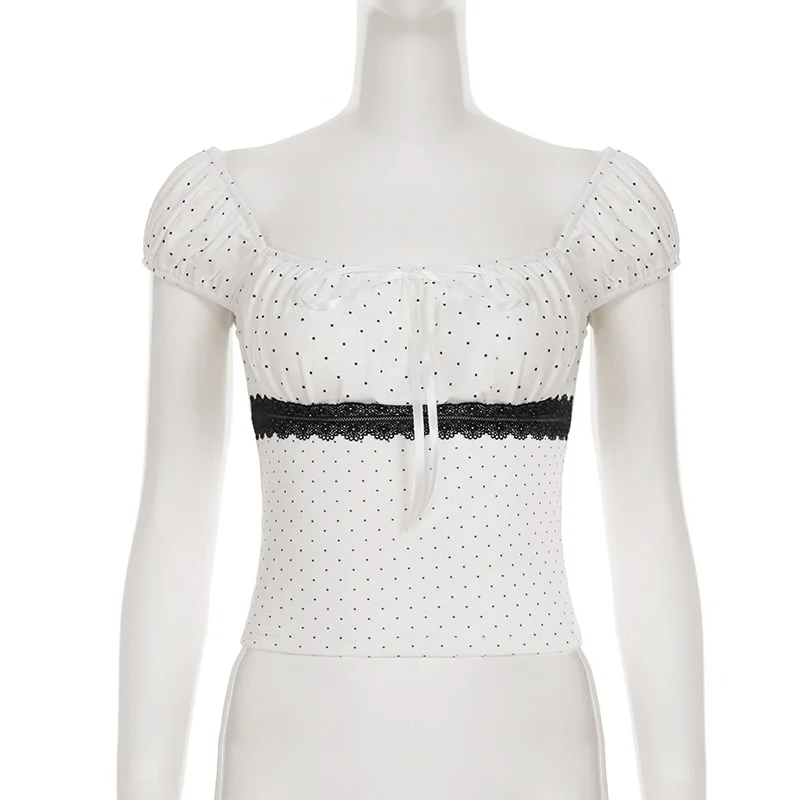 Cyflymder Casual Dot Printed T Shirt French Style Slim Bandage Lace Trim Short Sleeve Tees Women 2025 Summer Fashion Streetwear