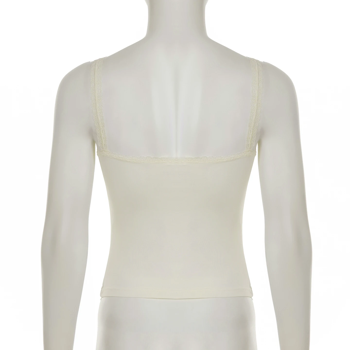 Cyflymder Casual Folds Lace Trim Camis Tops Slim Solid V-Neck Sleeveless Tank Tops Women 2025 Summer Fashion Streetwear Ladies