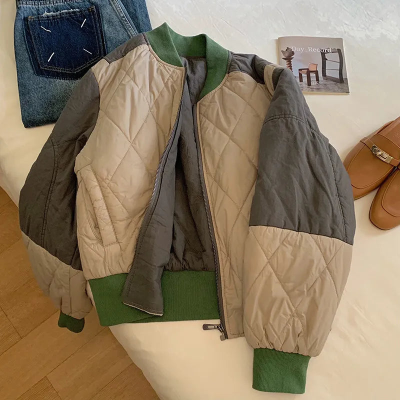 Cyflymder Casual Oversize Nylon Puffer Jaet Men's Women's Rhombus Patterned Winter Coat Youth Faion Thiened Polyester Fiber