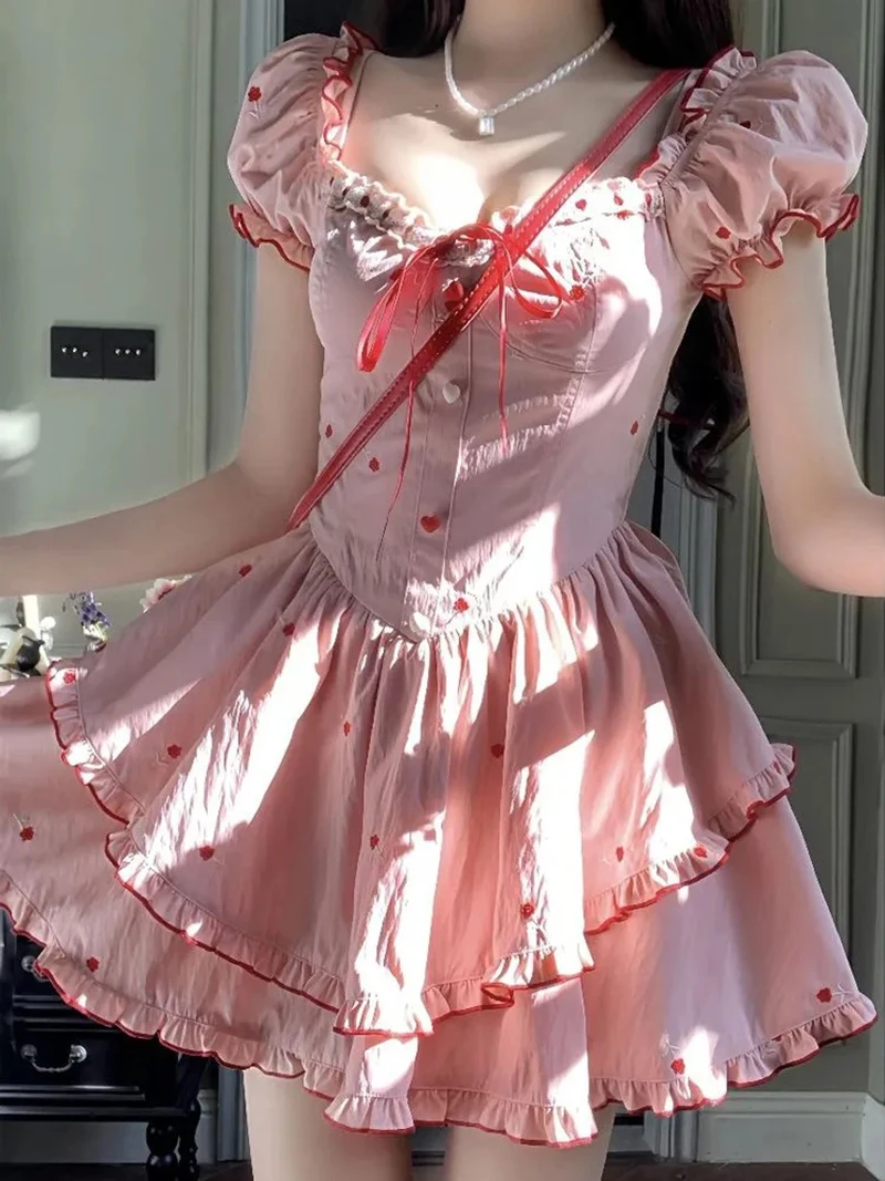 Cyflymder Casual Print Sexy Dress Women Slim Fashion Square Collar Sweet Mini Dress Fashion Lace Up Puffy Sleeve Korean Vestidos New