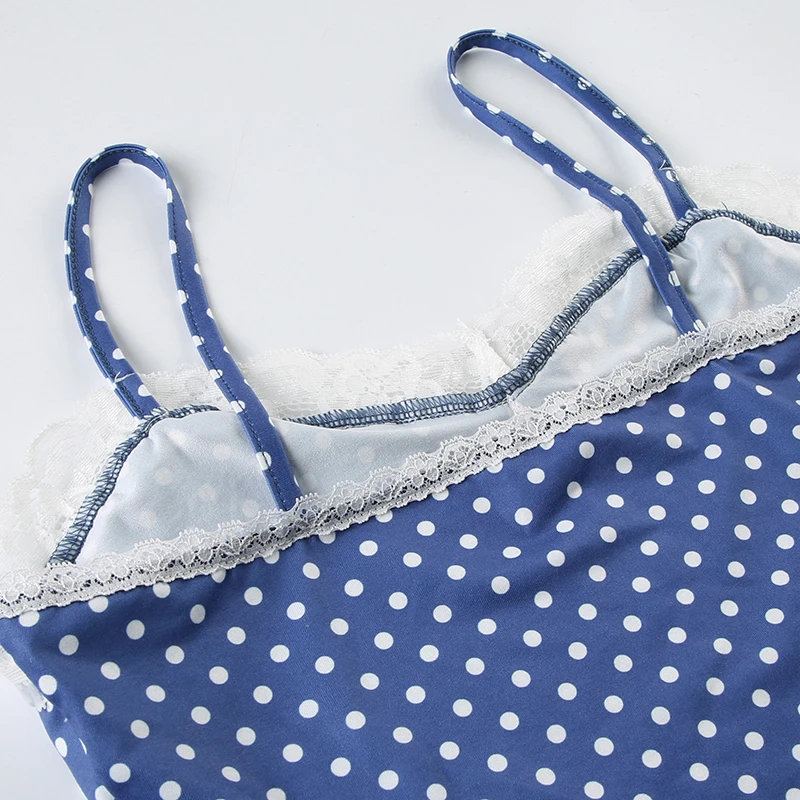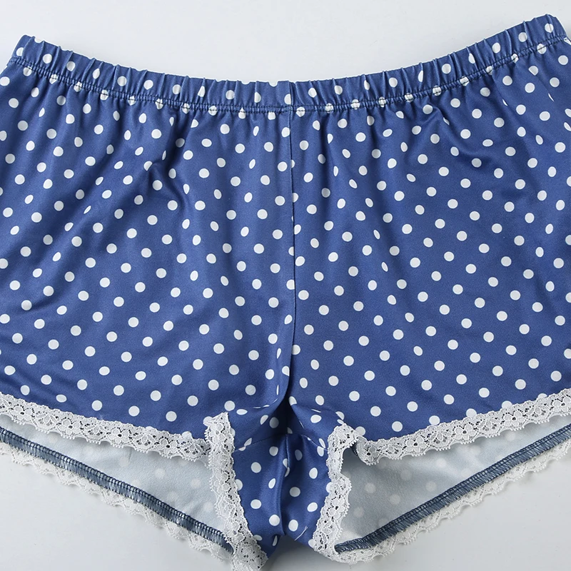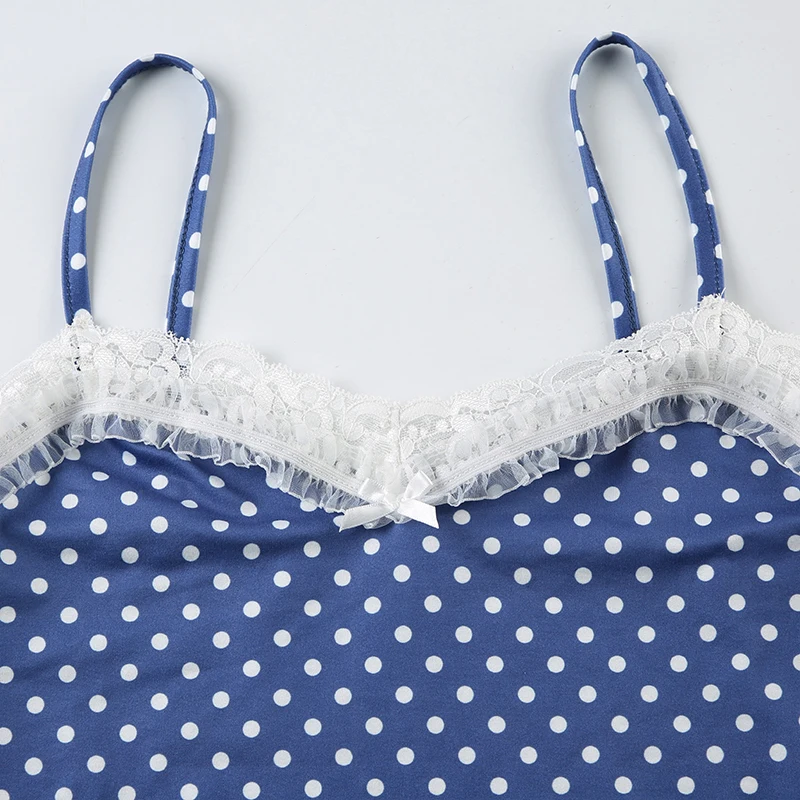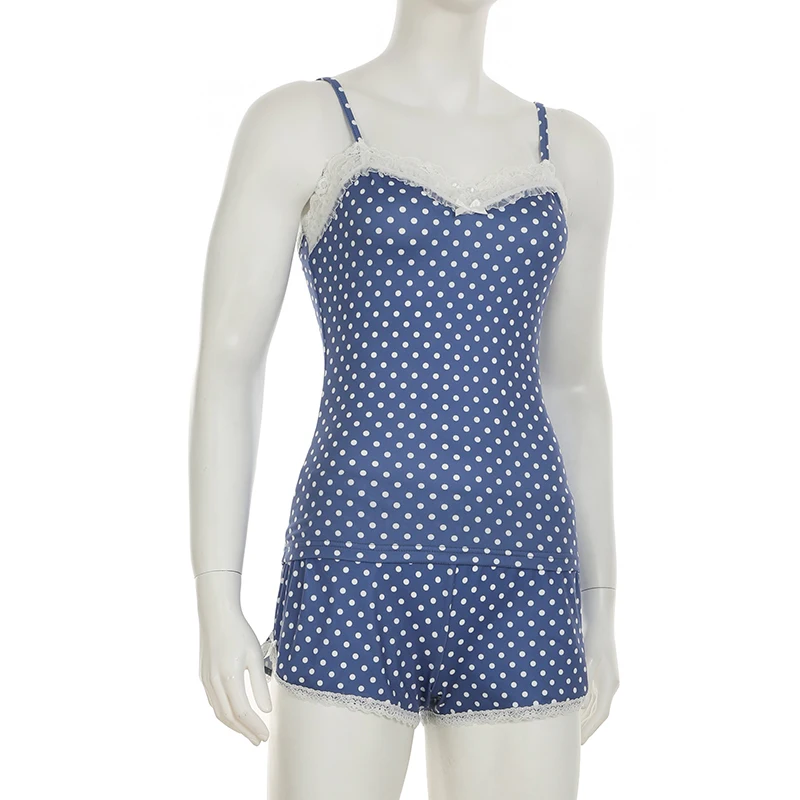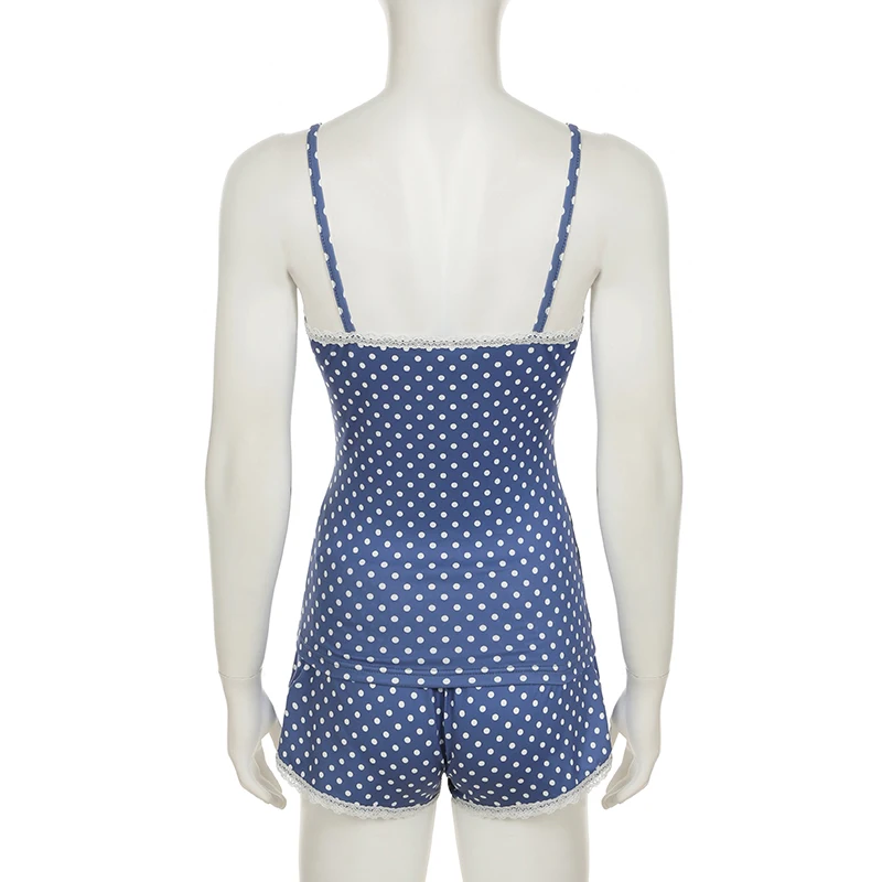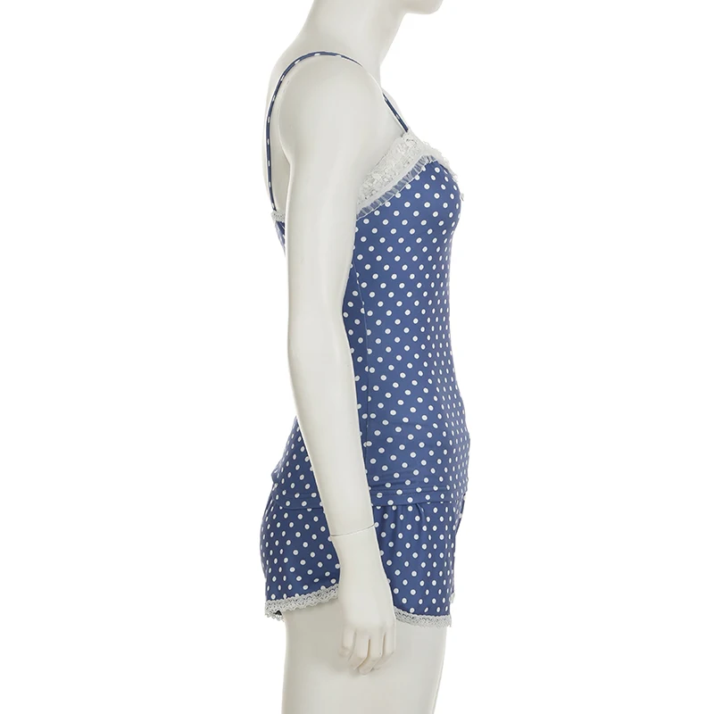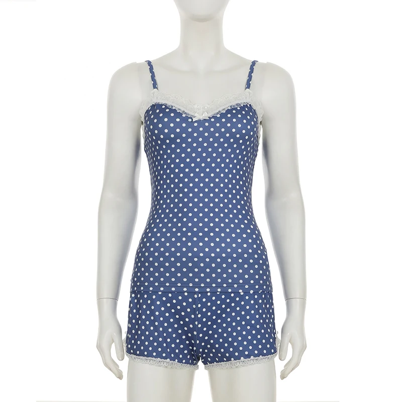 Cyflymder Casual Slim Dot Print Shorts Sets Housewear 2 Piece Sets Lace Trim Camis Tops Mid-Waist Shorts Women 2025 Summer Fashion