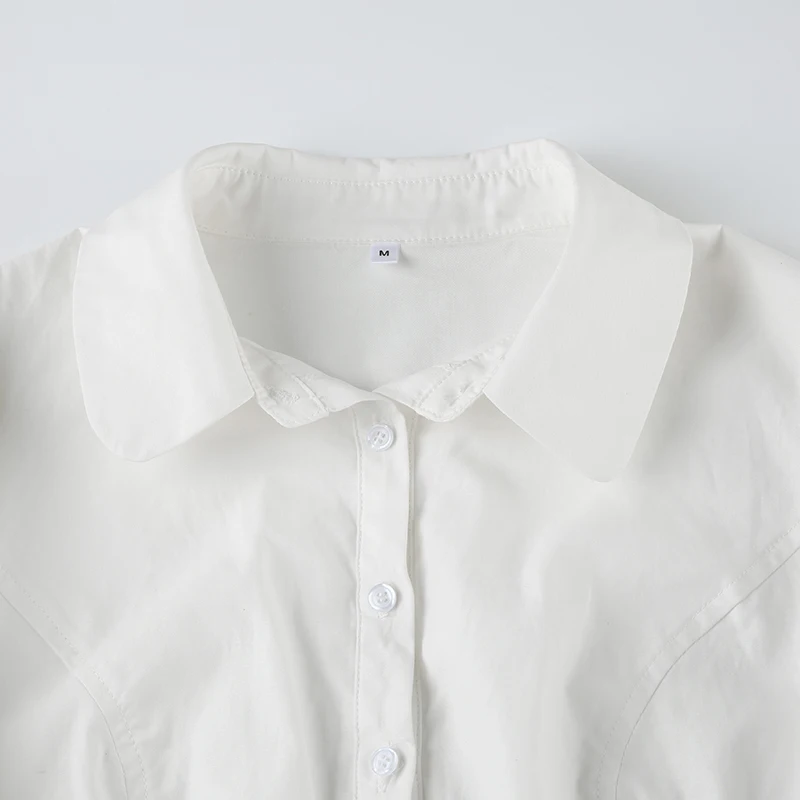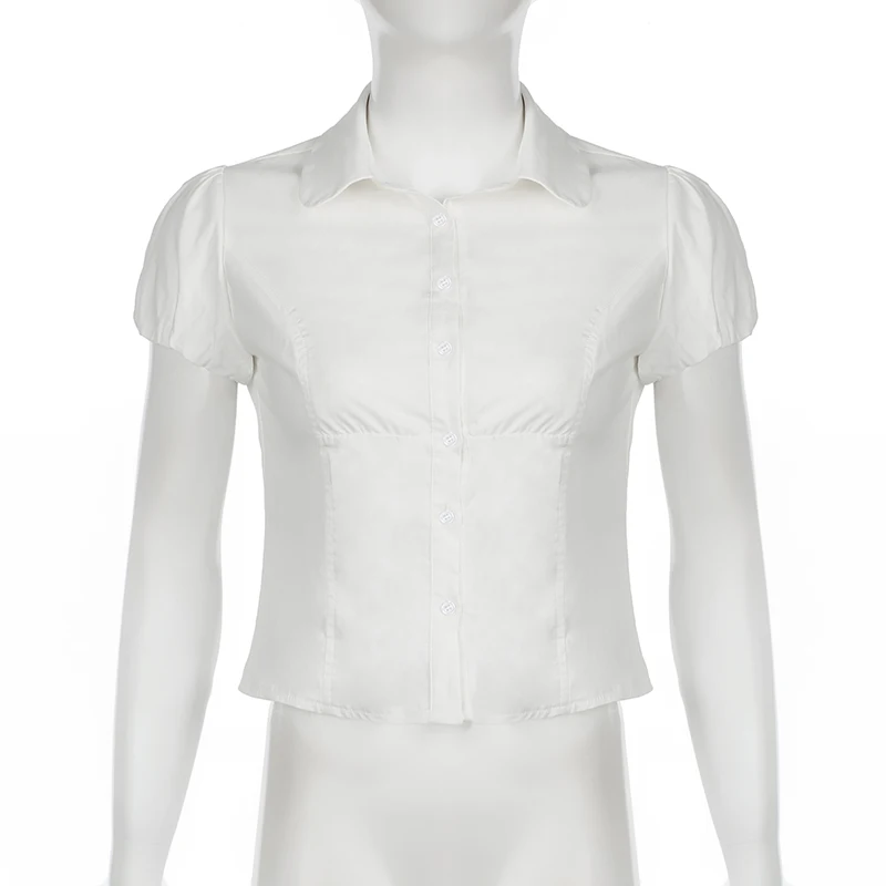 Cyflymder Casual Solid Blouse Basic Slim Deep V-Neck Turn-Down Collar Short Sleeve Shirts Women 2025 Summer Fashion Streetwear