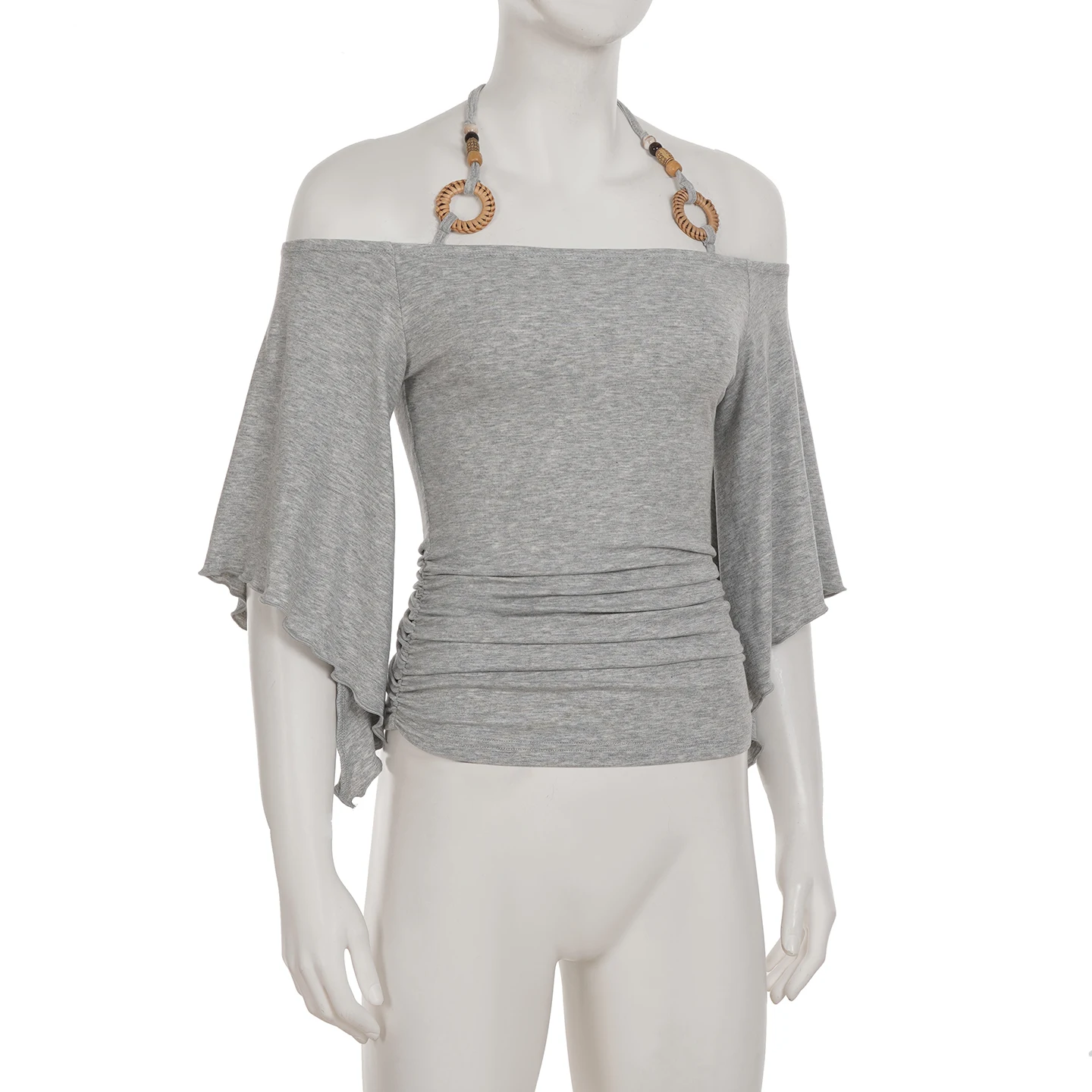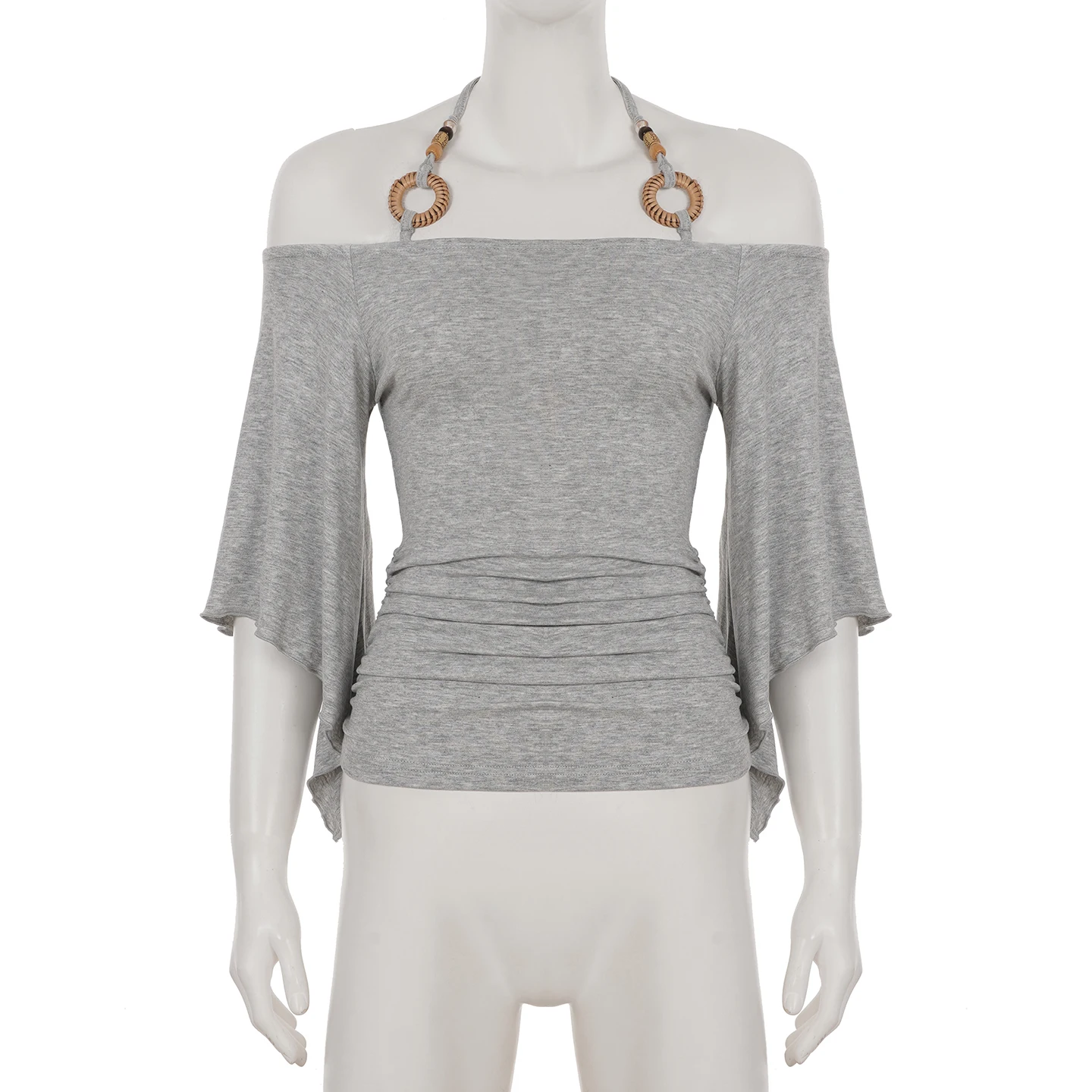 Cyflymder Casual Solid Halter T Shirt Casual Slim Bandage Slash Neck Short Sleeve Tees Women Summer Fashion Streetwear Ladies