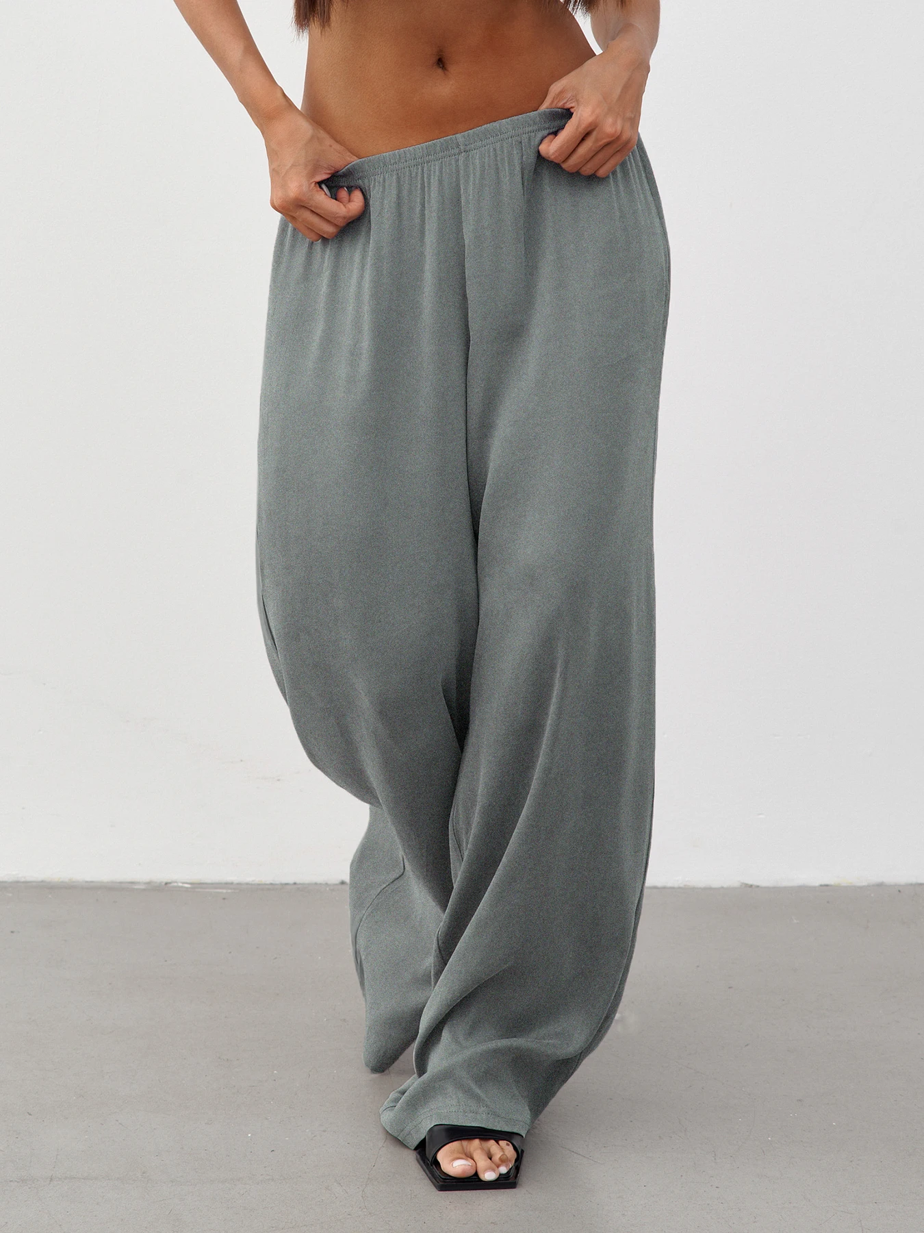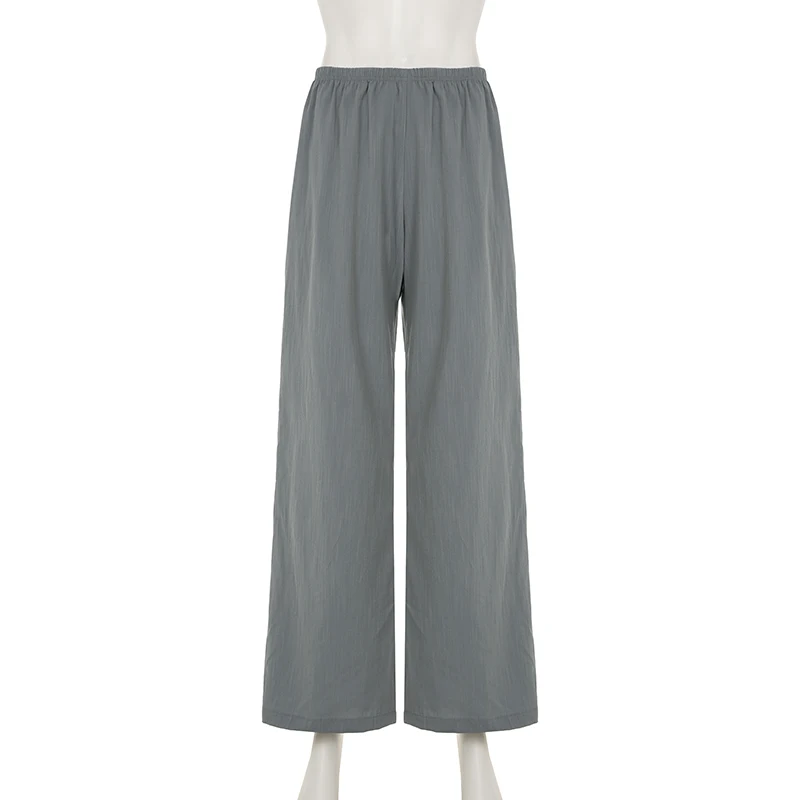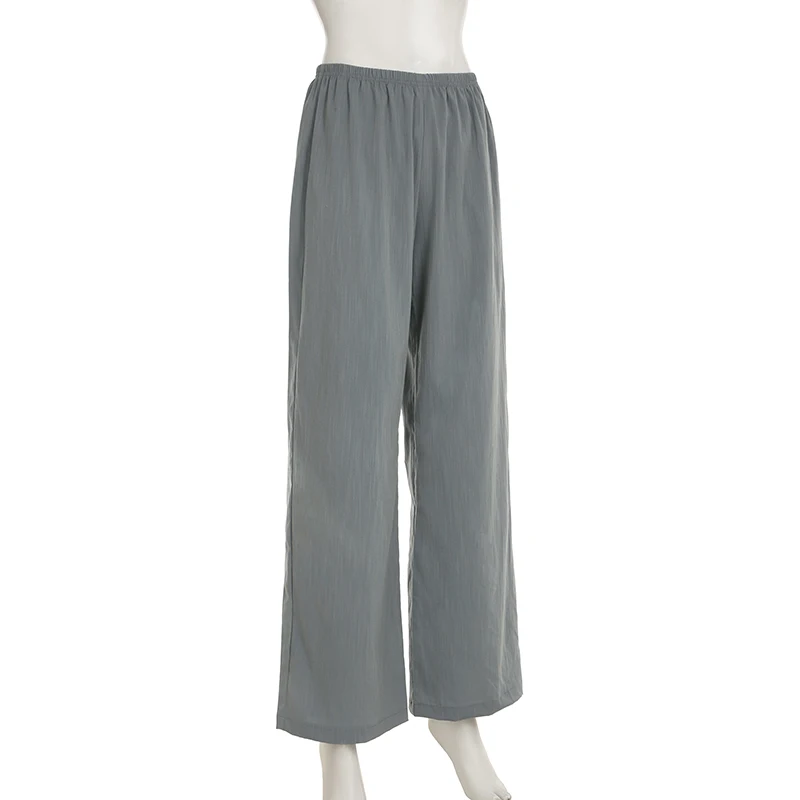 Cyflymder Casual Solid Wide Leg Pants Loose Basic Mid-Waisted Straight Pants Women Spring Autumn Streetwear Ladies
