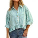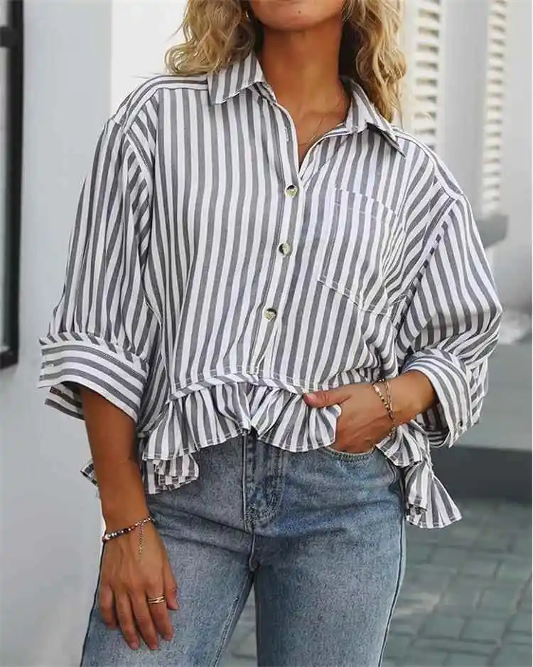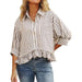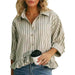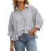 Cyflymder Casual Stripe irt Women's Summer Top Button down ort Sve Gathered Hem Bubble Sve Polyester Fiber Commute Sleeve