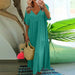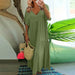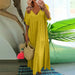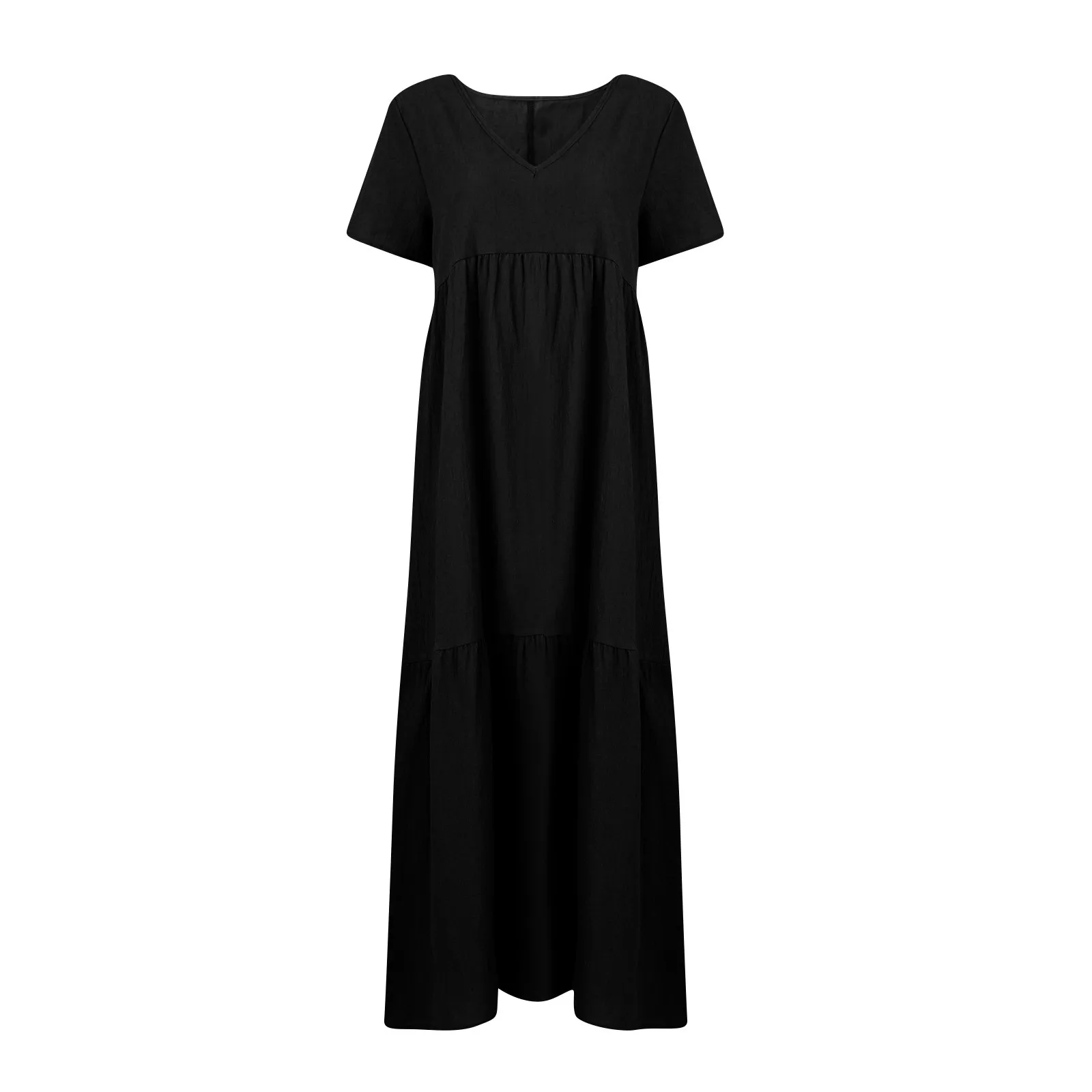 Cyflymder Casual Summer V-Neck Short Sleeve Pleated Solid Color Casual Midi Dress Hem Loose Dress Loose Large Swing Short-sleeved Dress