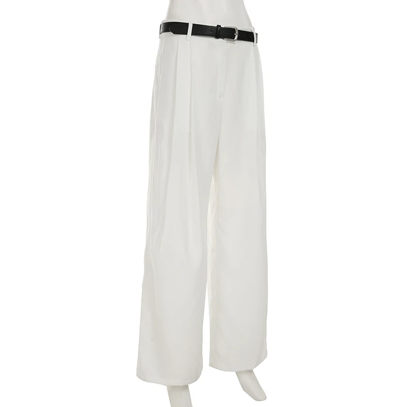 Cyflymder Casual White Loose Suit Pants with Belt Women Summer Street Style Baggy Straight Trouser Korean Fashion All-match Capris