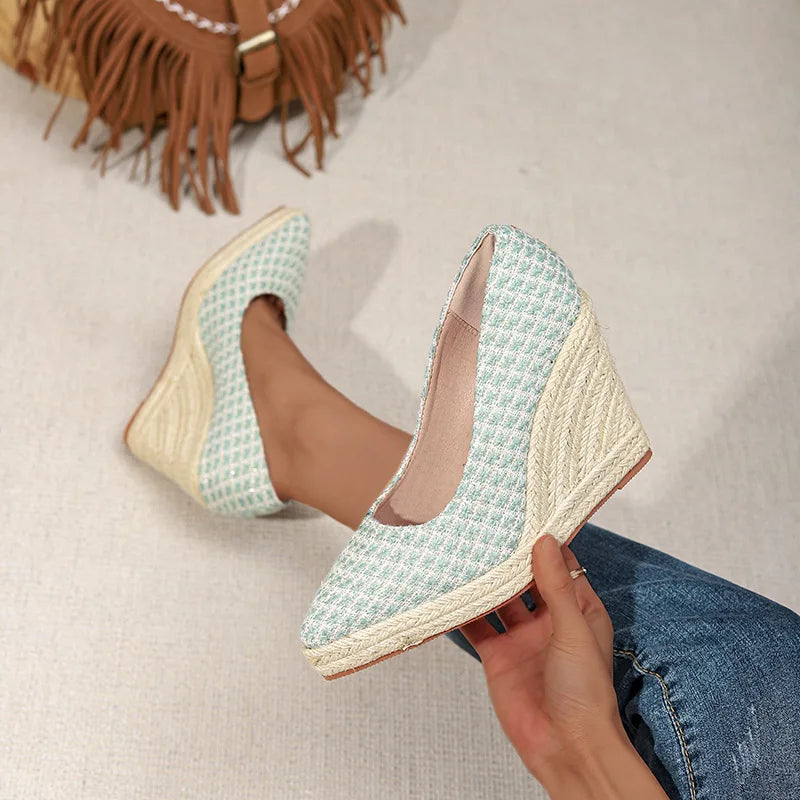 Cyflymder Casual Woman Shoe Pointed Toe Shallow Mouth Clogs Platform Female Footwear Autumn Creepers Dress Fall Summer Classics Fabric Lac
