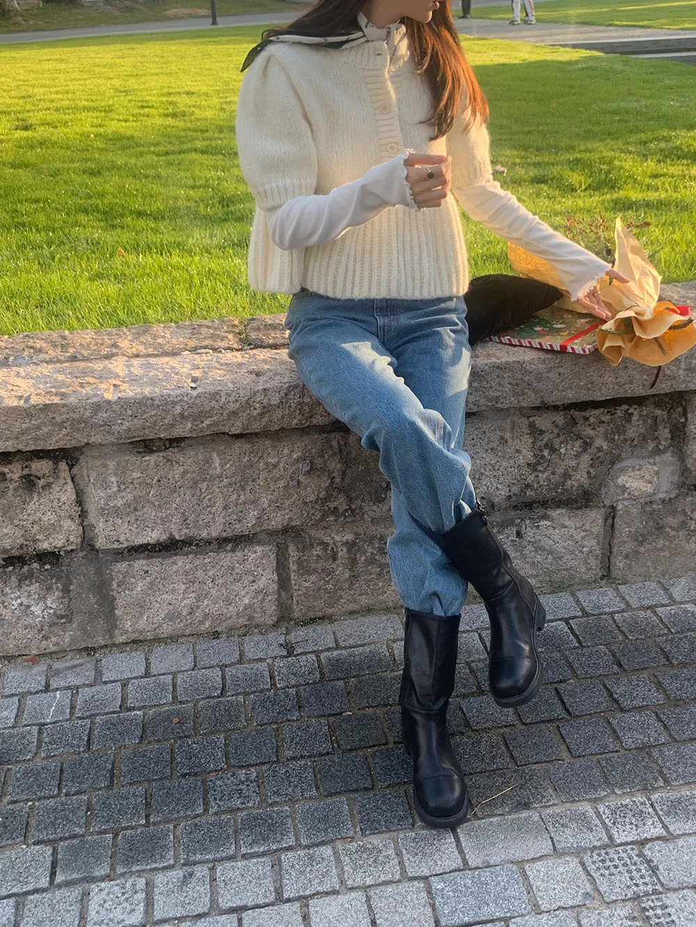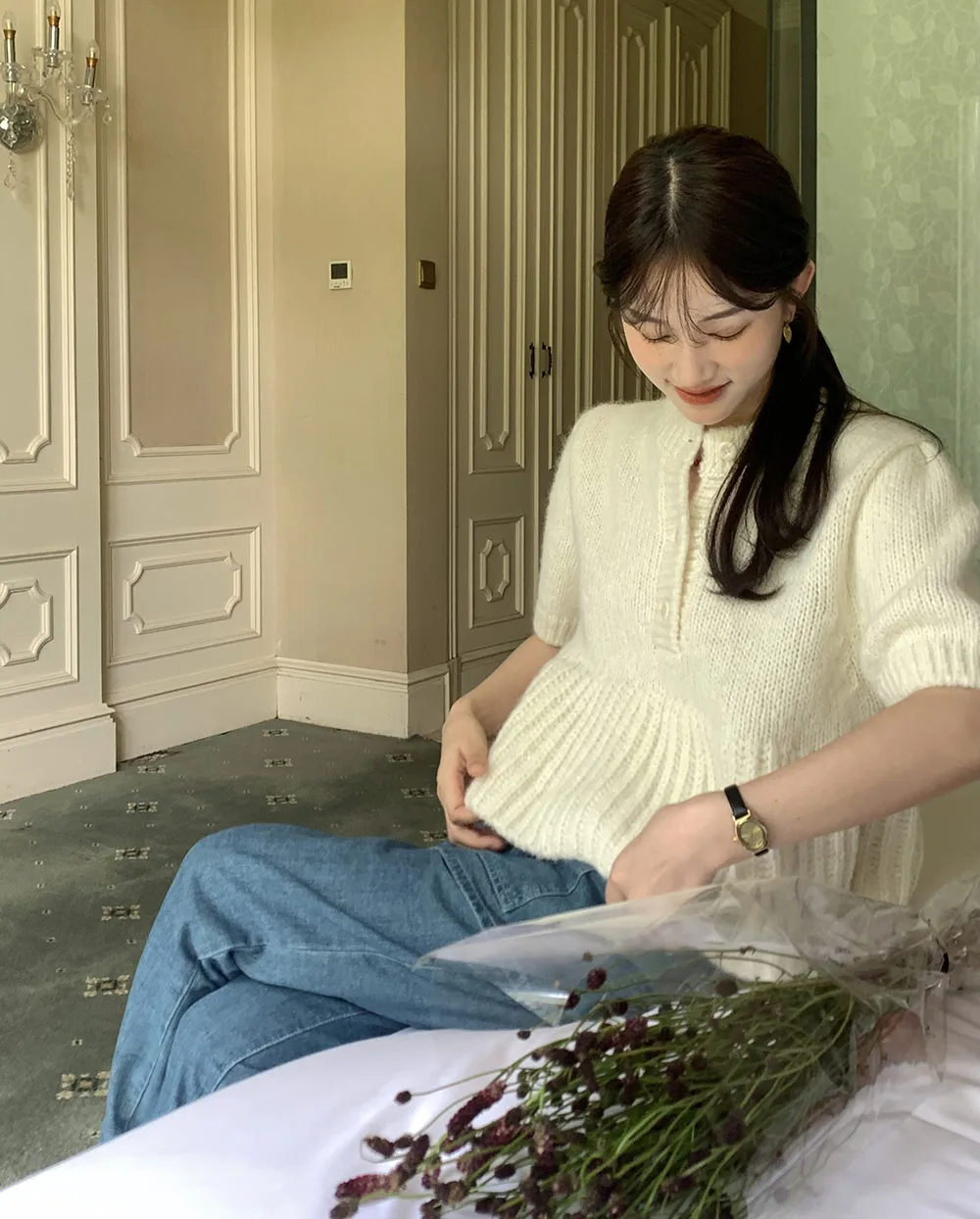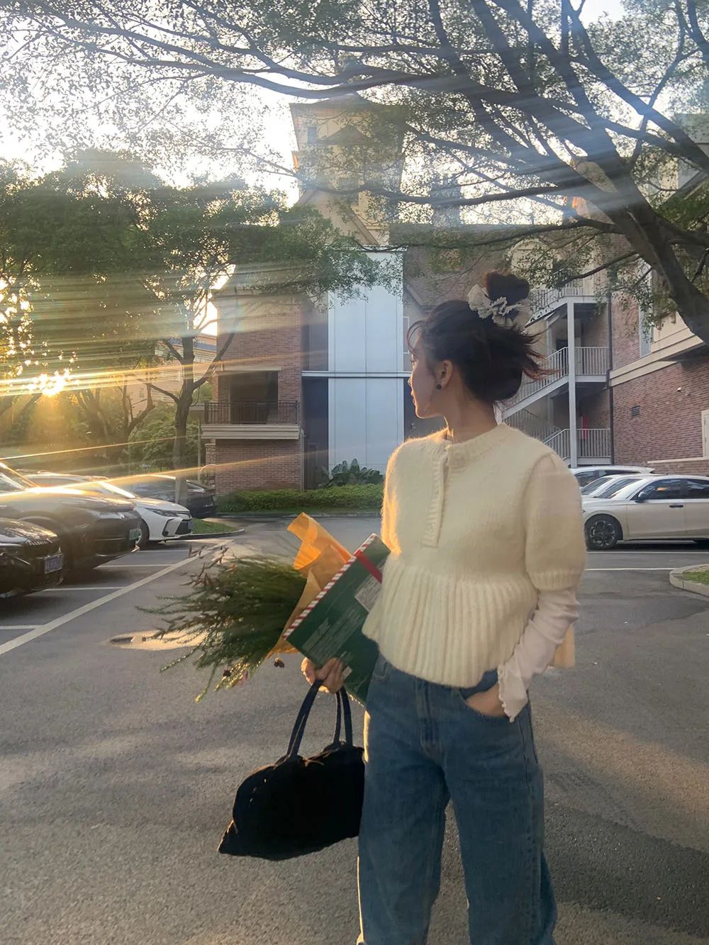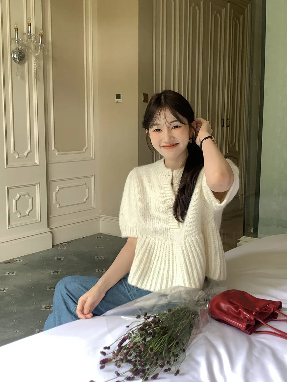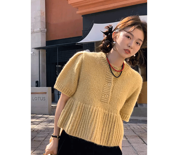 Cyflymder Chic Autumn New Sle Retro Splicing Lace Trim Soft Bubble Sve Knitted Sweater Women's Faionable Commute Loose Fit