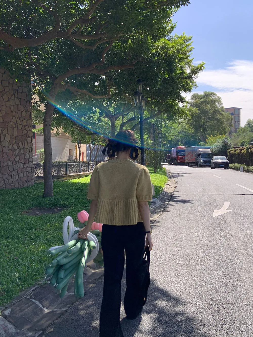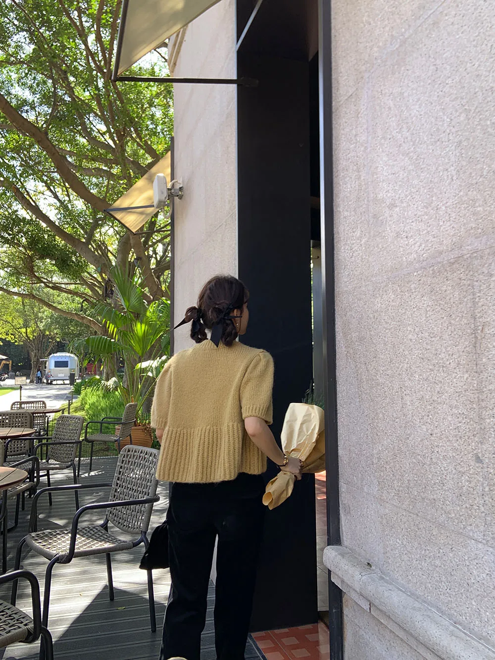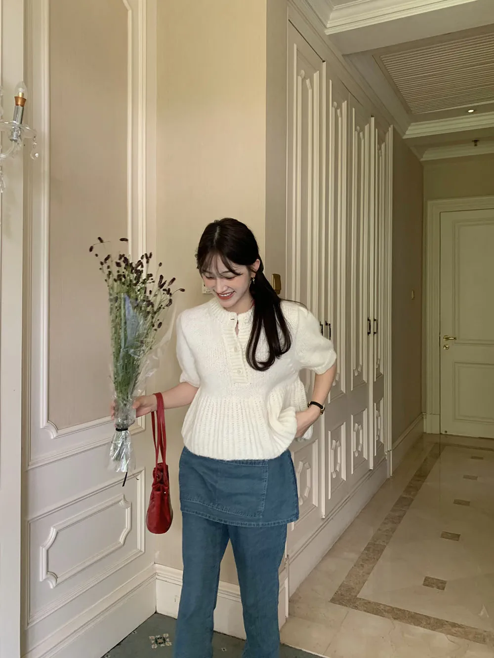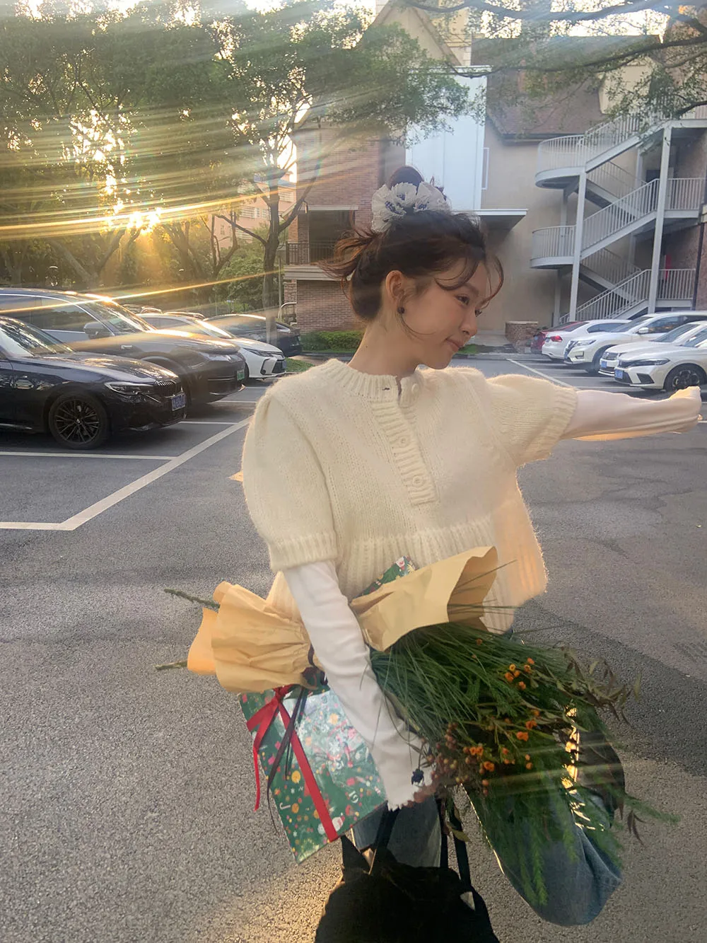 Cyflymder Chic Autumn New Sle Retro Splicing Lace Trim Soft Bubble Sve Knitted Sweater Women's Faionable Commute Loose Fit