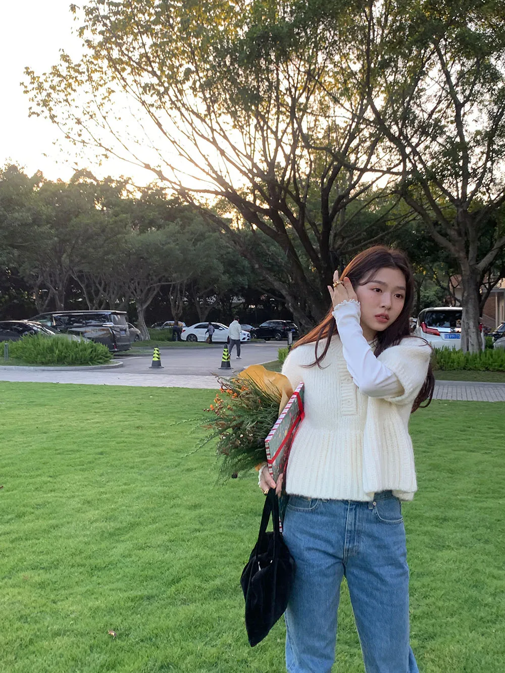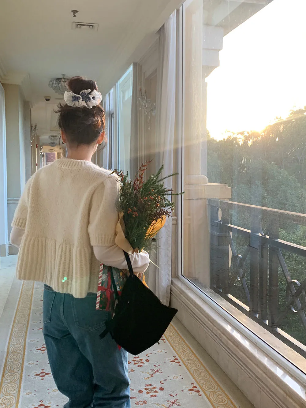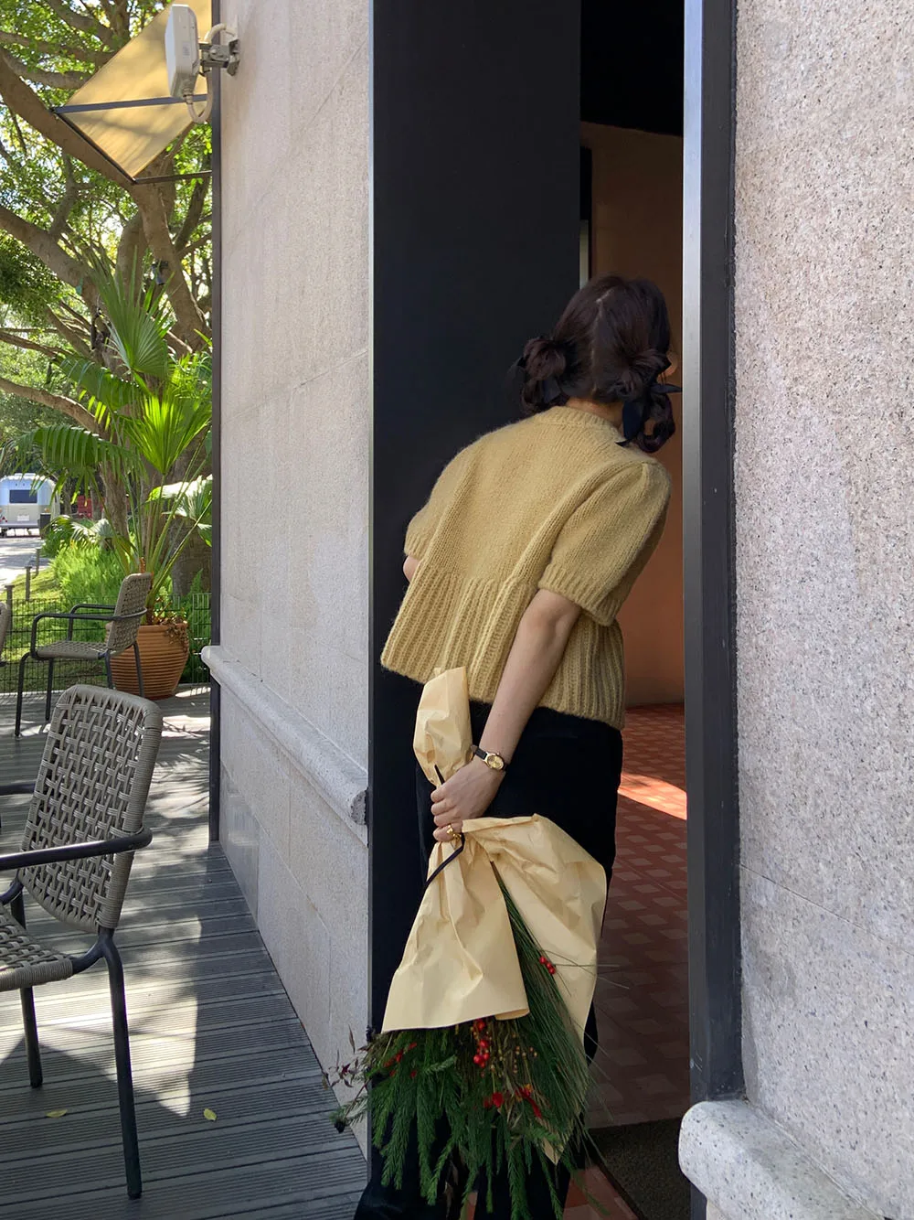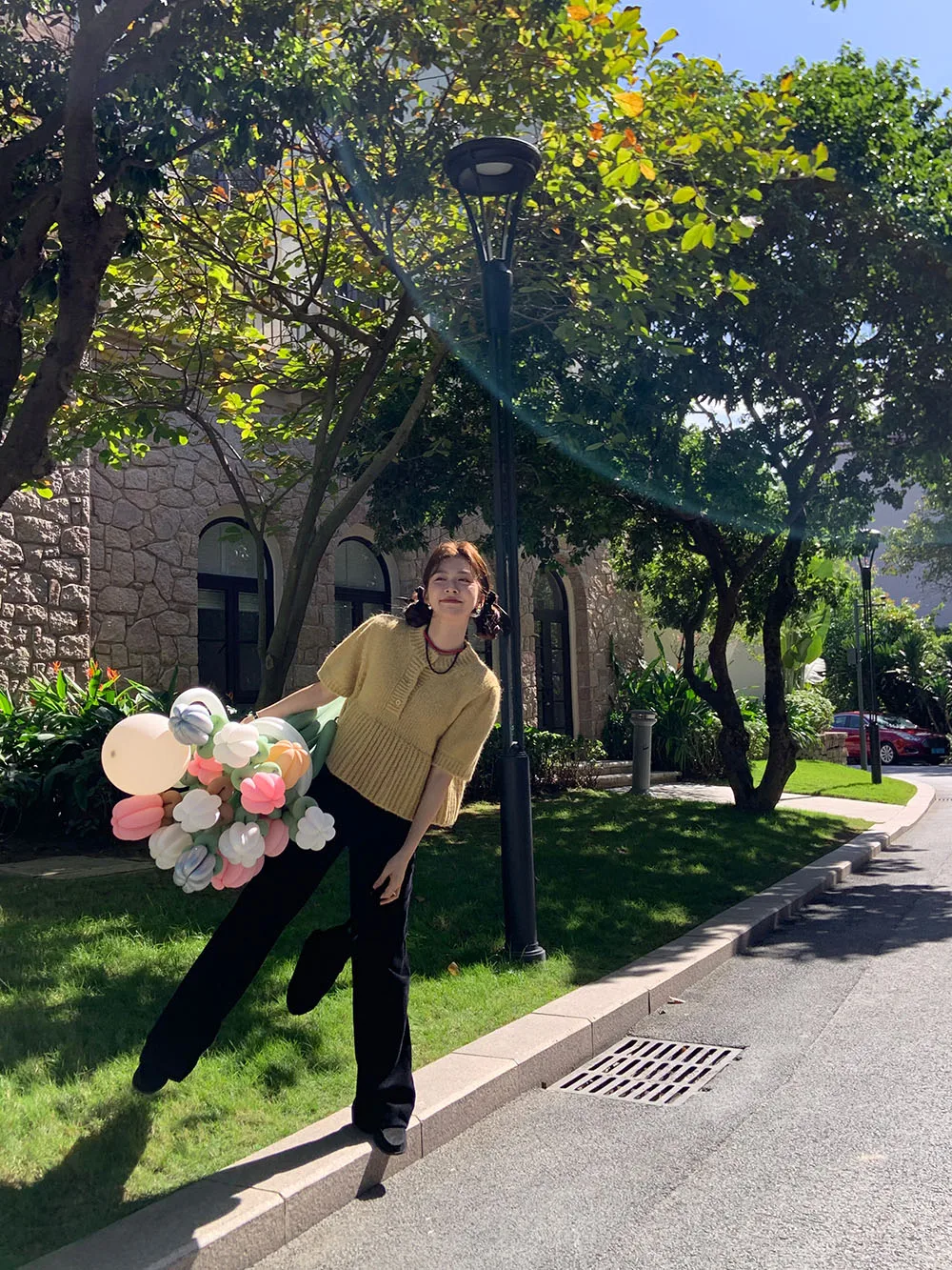 Cyflymder Chic Autumn New Sle Retro Splicing Lace Trim Soft Bubble Sve Knitted Sweater Women's Faionable Commute Loose Fit