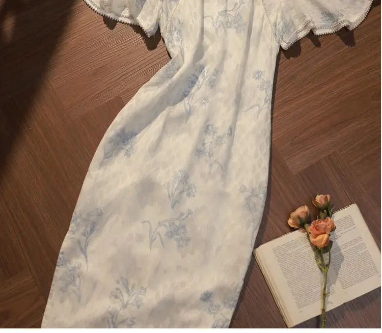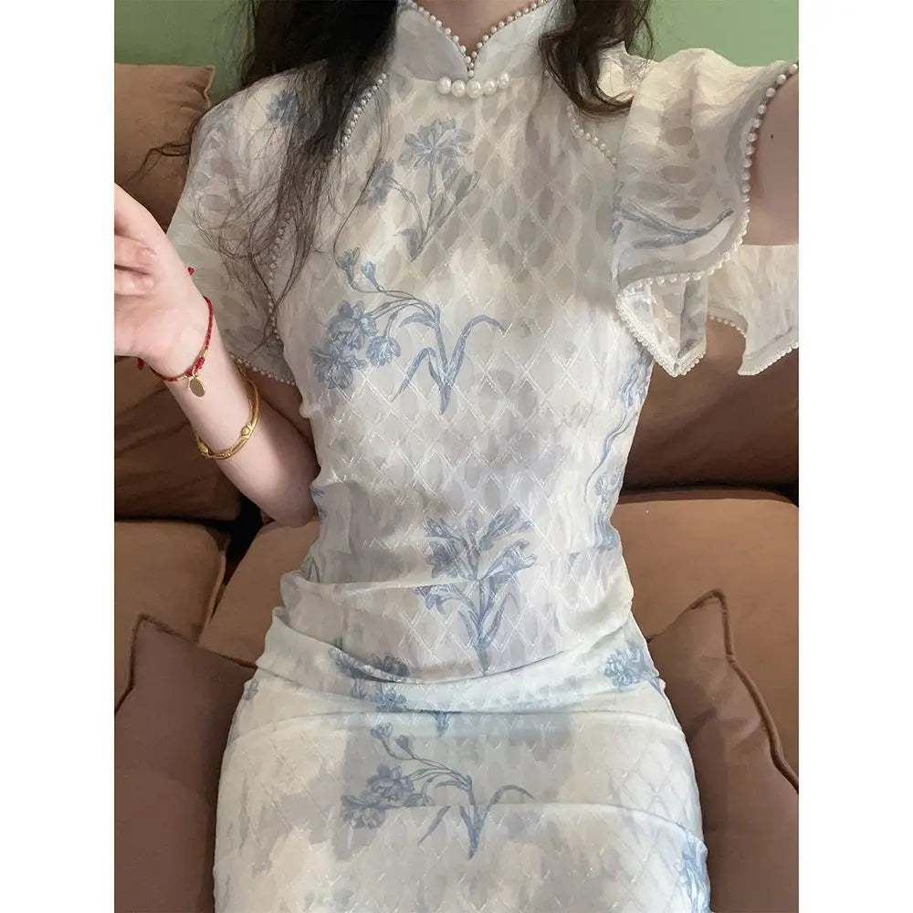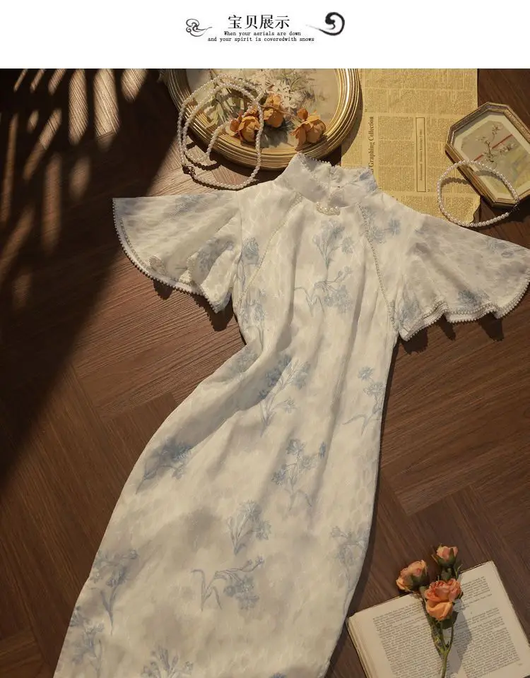 Cyflymder Chinese Style Improved Cheongsam Spring Summer New Retro Long Elegant Temperament Dress Short Sleeve Slim Qipao Dresses