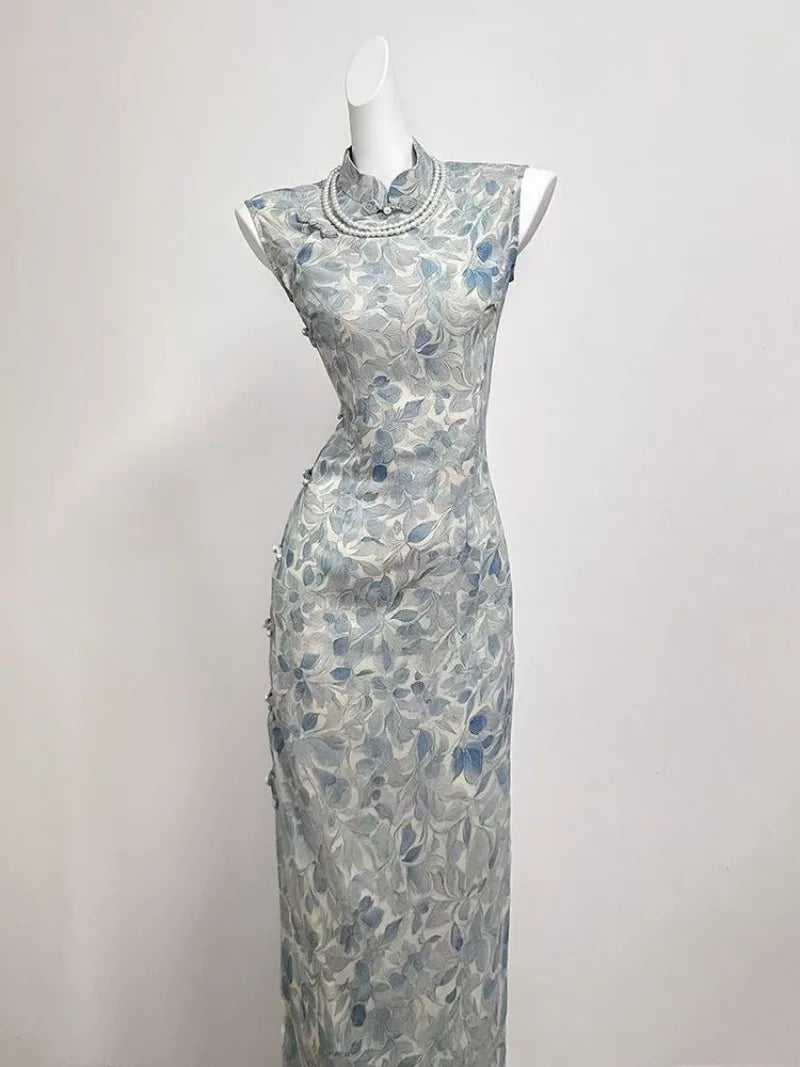 Cyflymder Chinese Style Sexy Cheongsam Women's Summer Elegant Slim Fit Stand Collar Sleeveless Dress Fashion Female Clothes