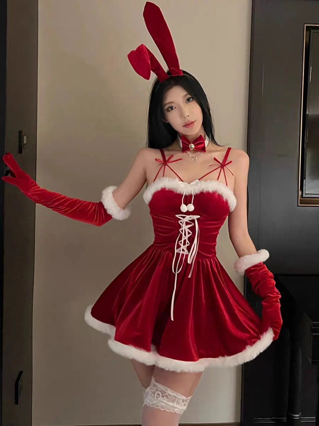 Cyflymder Christmas Lingerie Sexy Bunny Dress Santa Claus Cosplay Costume Club Party Performance Photoshooting Seductive Temptation