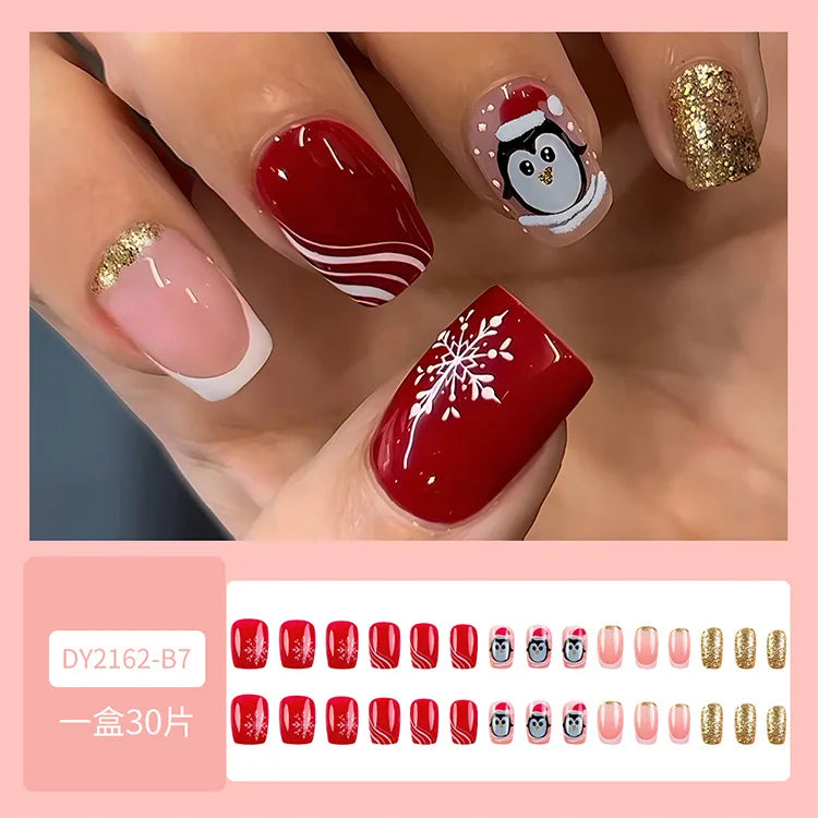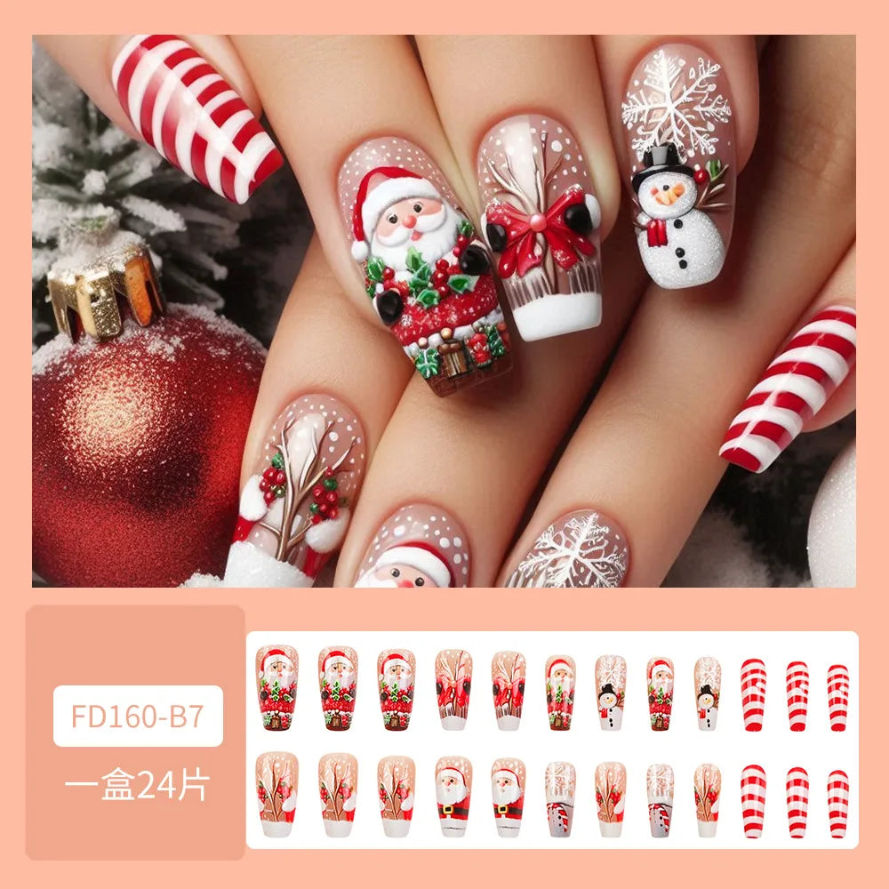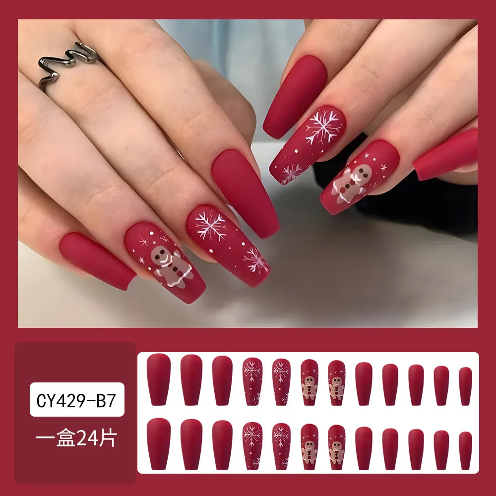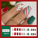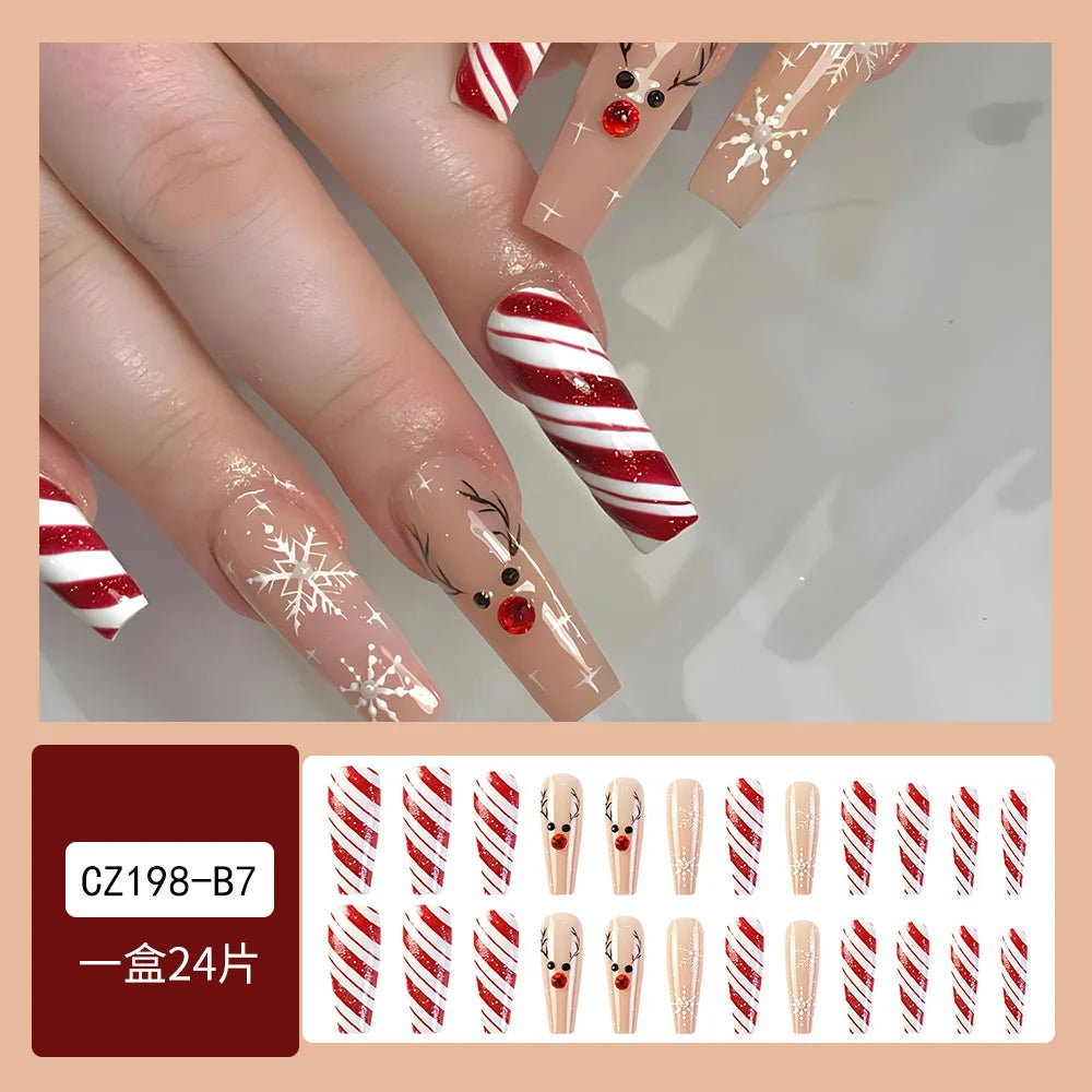 Cyflymder Christmas Press on Nails Red Stripe Deer Snow Pattern Fake Nails for Women Wearable Winter Long Coffin/Almond False Nails