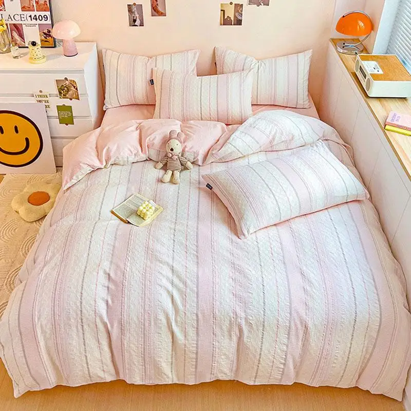 Cyflymder Class A 60S Pure Cotton Bedding Sets Jacquard Cotton Skin Friendly Comforter Set Girl Style Duvet Cover Set for Queen King Size