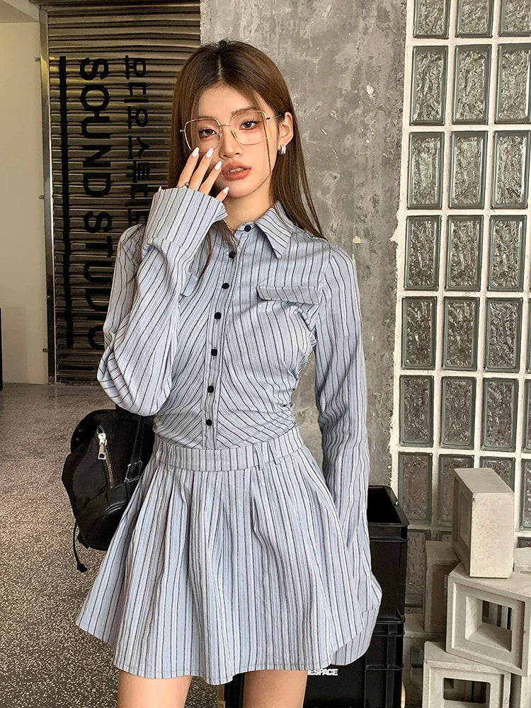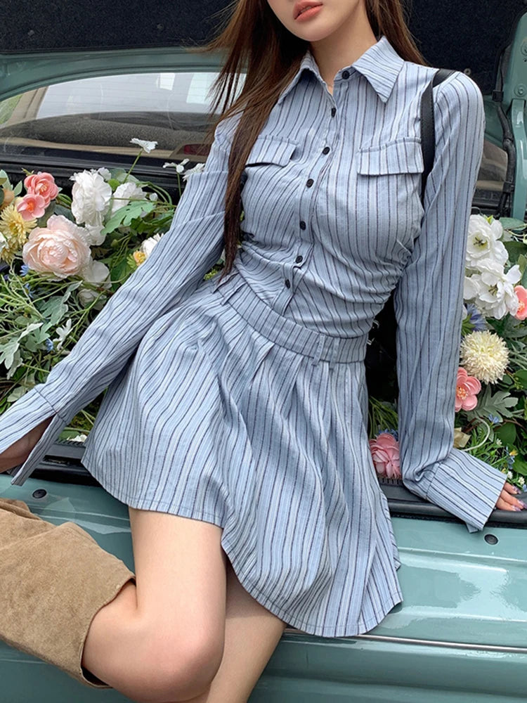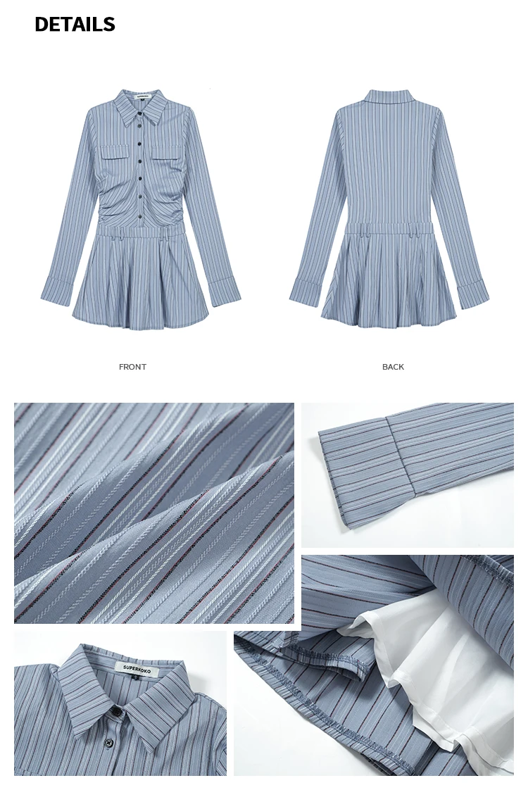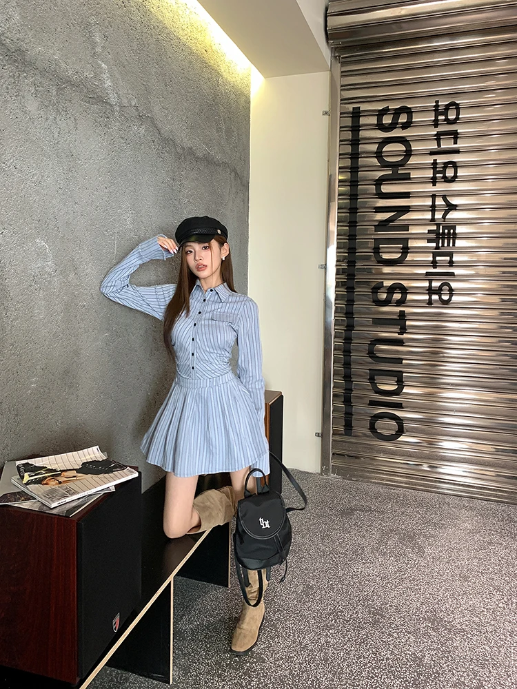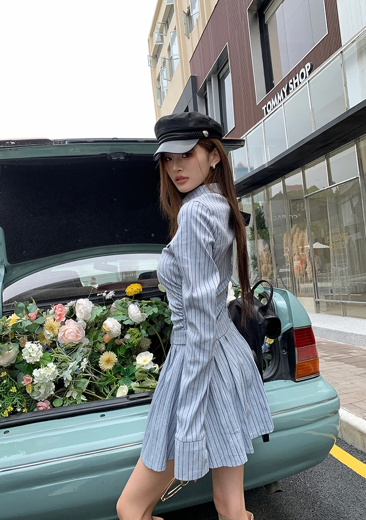 Cyflymder Classic Striped Chicly Slim Waist Sexy Mini Dress for Women Autumn Basic Long Sleeves Office Ladies Simple Casual Female Dresses