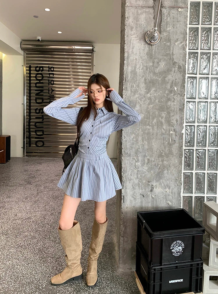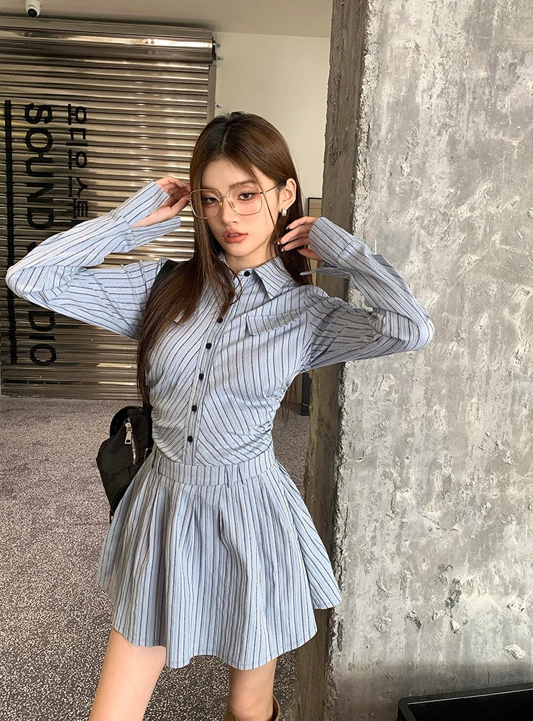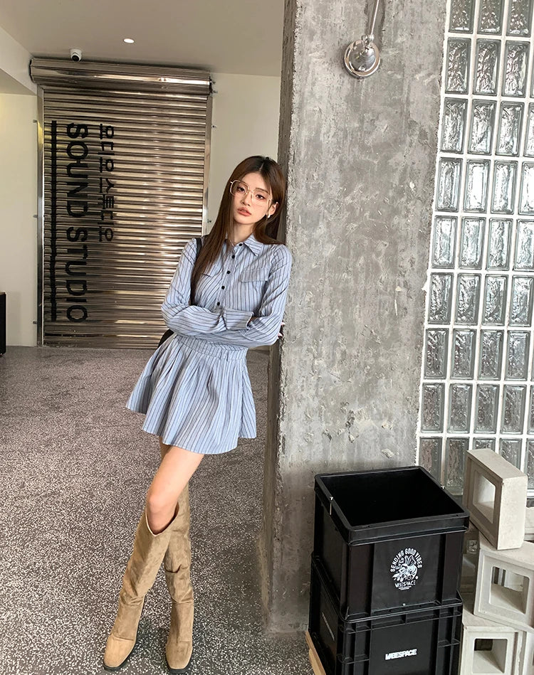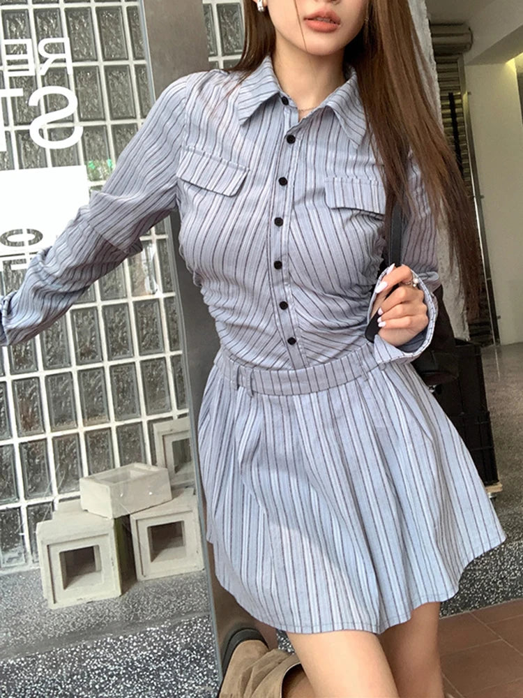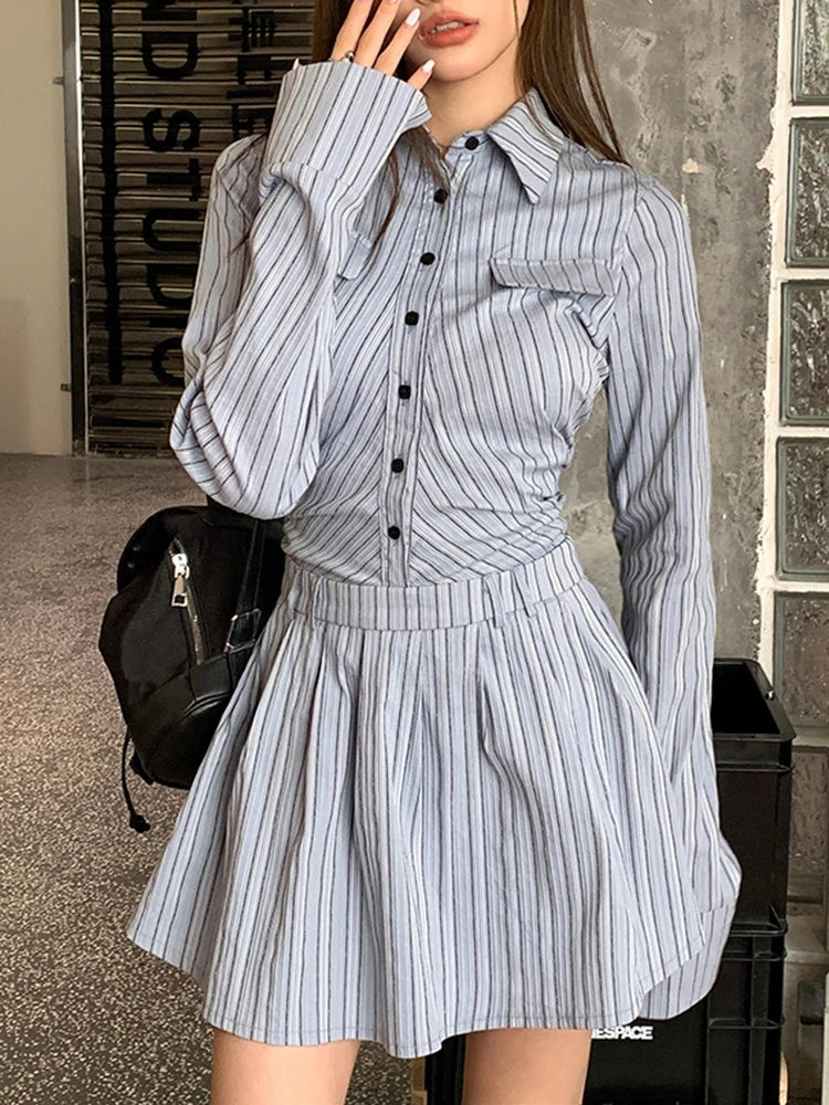 Cyflymder Classic Striped Chicly Slim Waist Sexy Mini Dress for Women Autumn Basic Long Sleeves Office Ladies Simple Casual Female Dresses