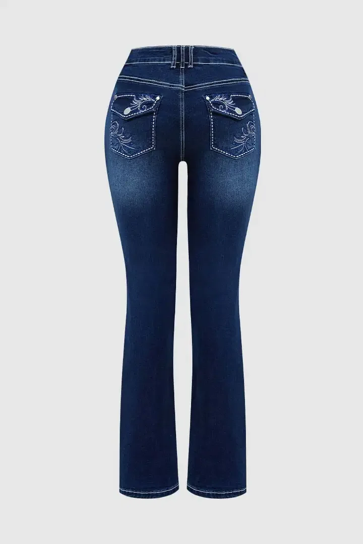 Cyflymder [Classy Cowgirl Jeans] Women's High-waist Stretch Flare Jeans, Elegant Slim Fit, Embroidered Flora and Paisley Bell Bottoms