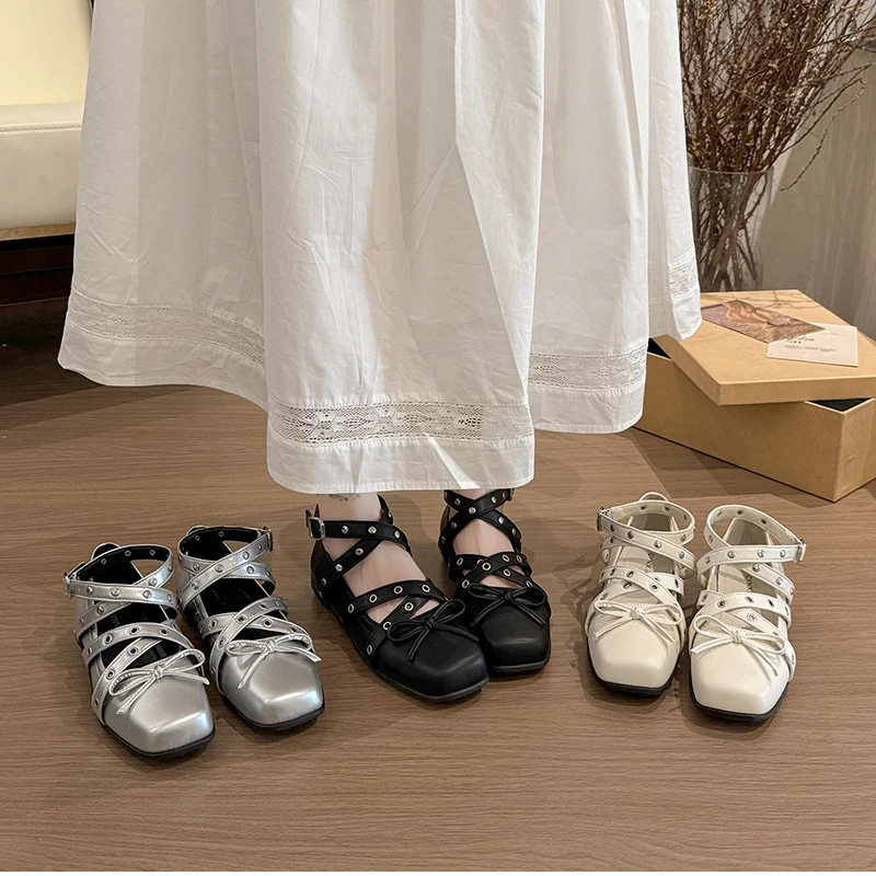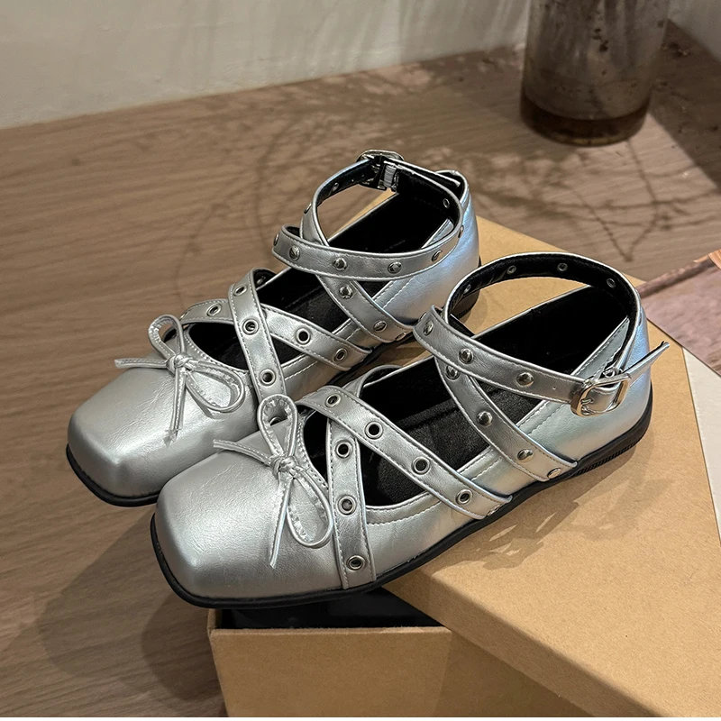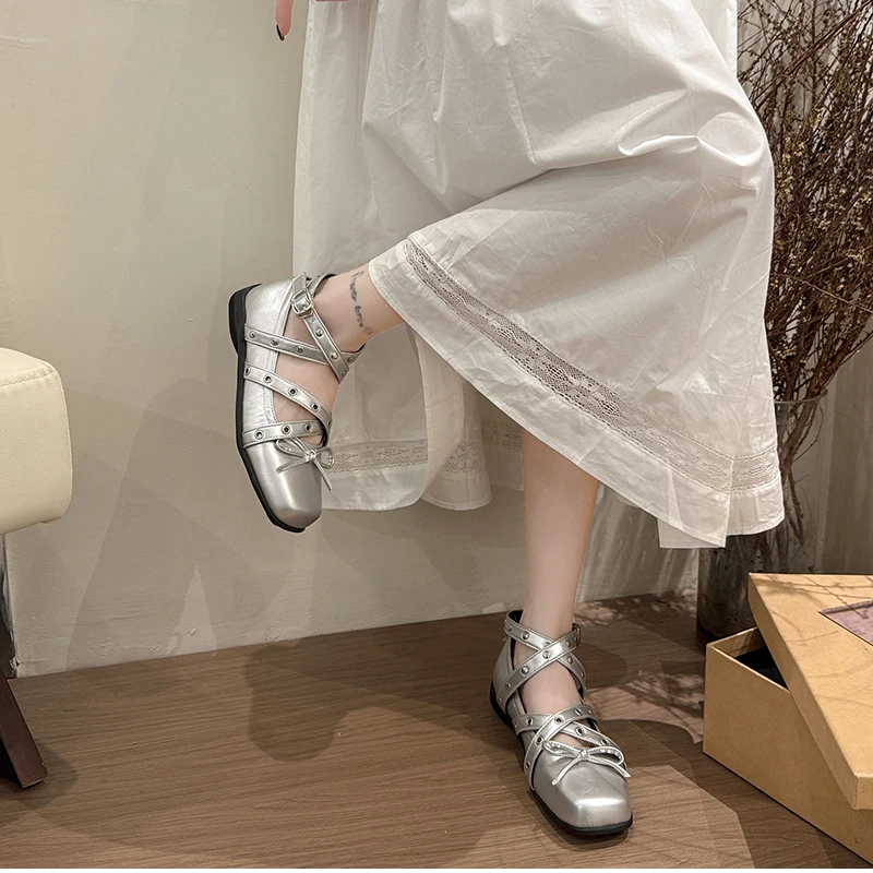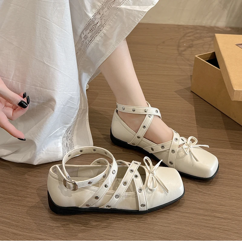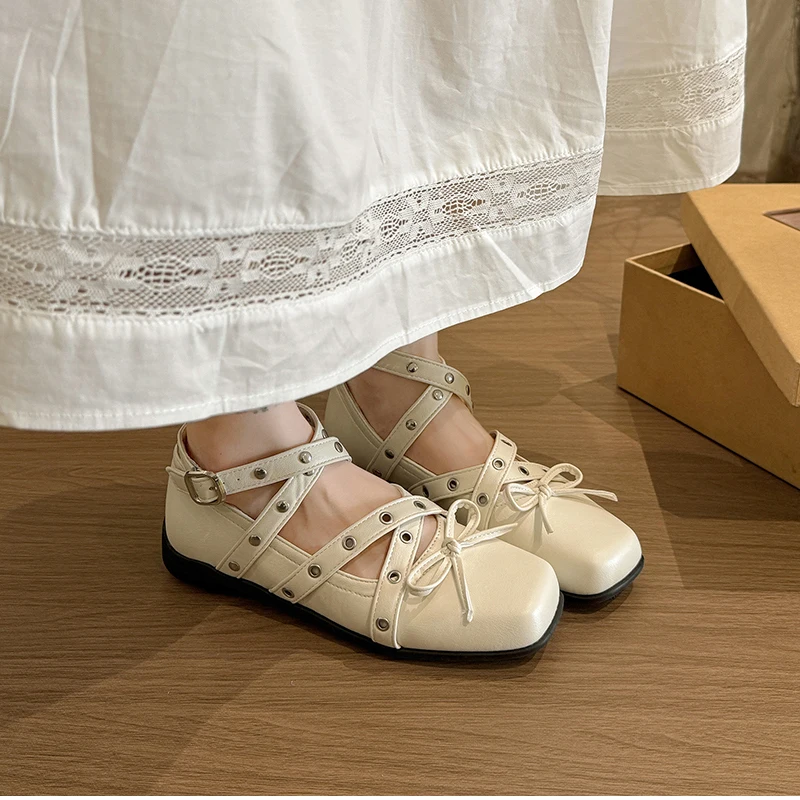 Cyflymder Cross Ankle Strap Butterfly-knot Women Flats Shoes Spring Autumn Women's Outdoor Comfort Mary Jane Shoes