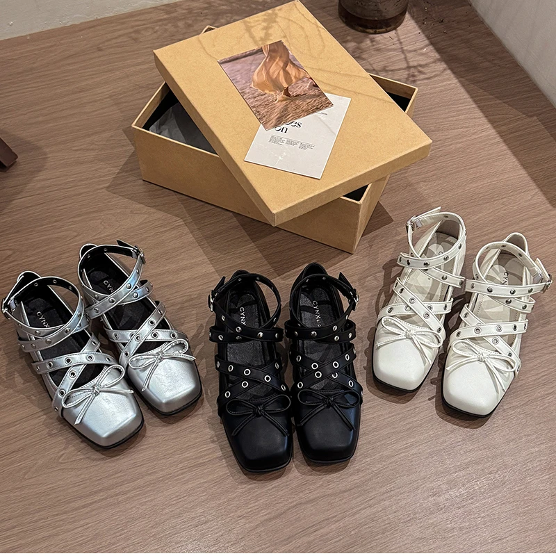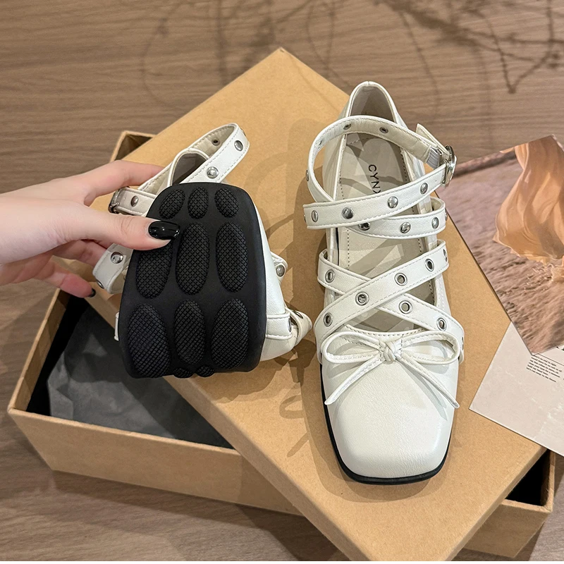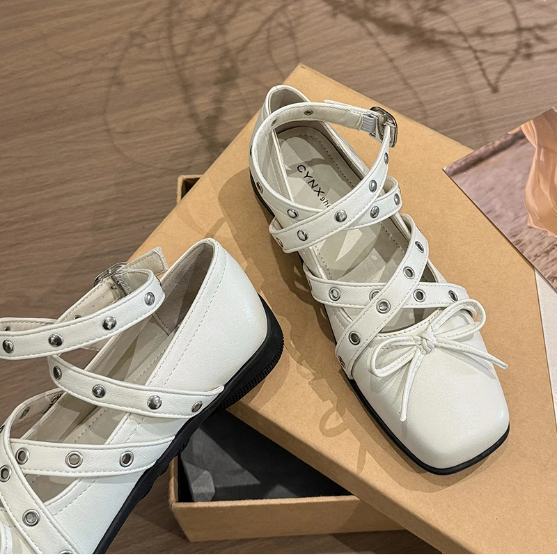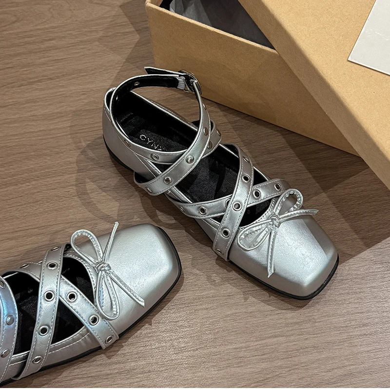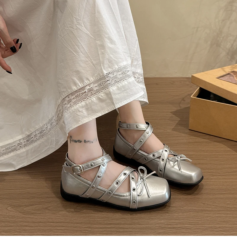 Cyflymder Cross Ankle Strap Butterfly-knot Women Flats Shoes Spring Autumn Women's Outdoor Comfort Mary Jane Shoes