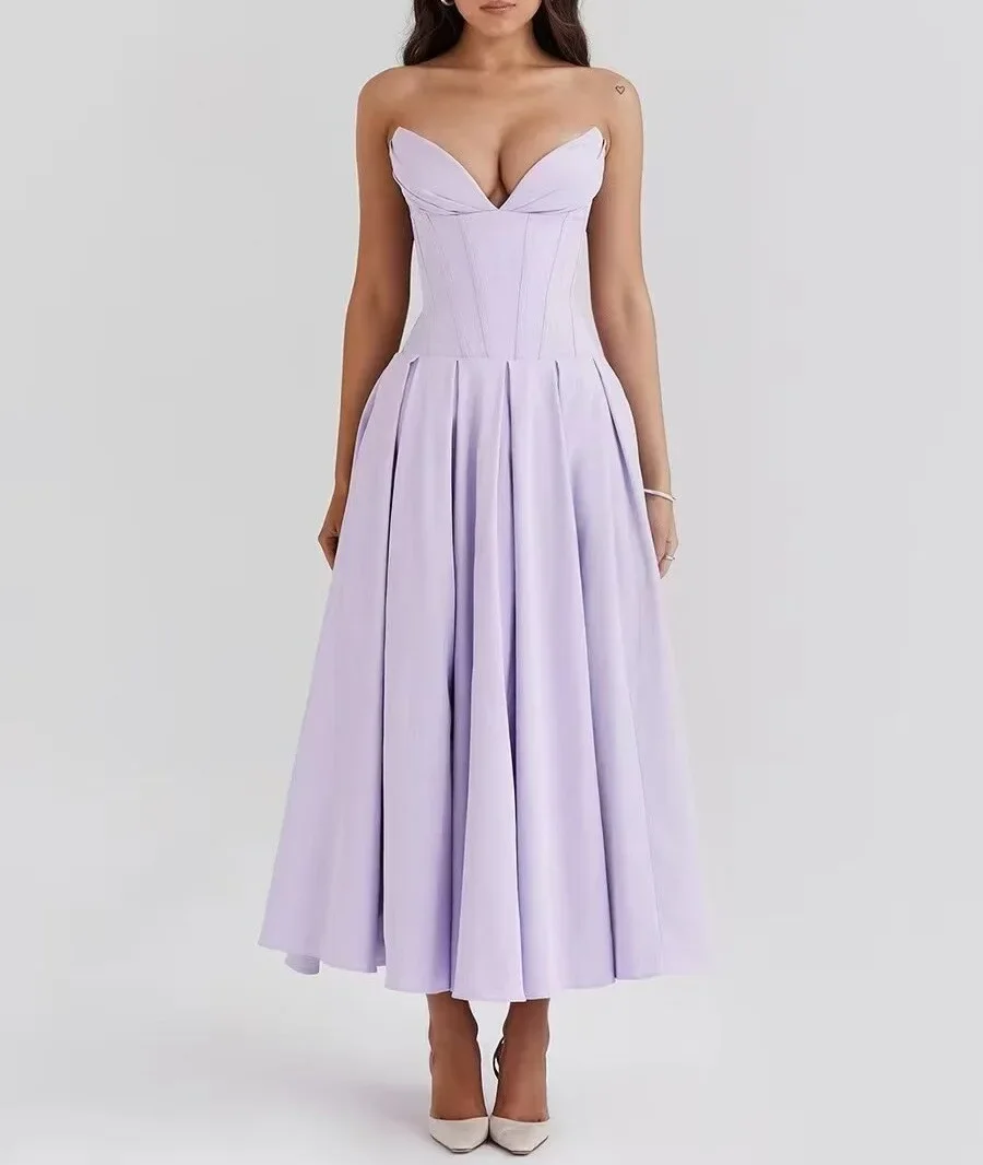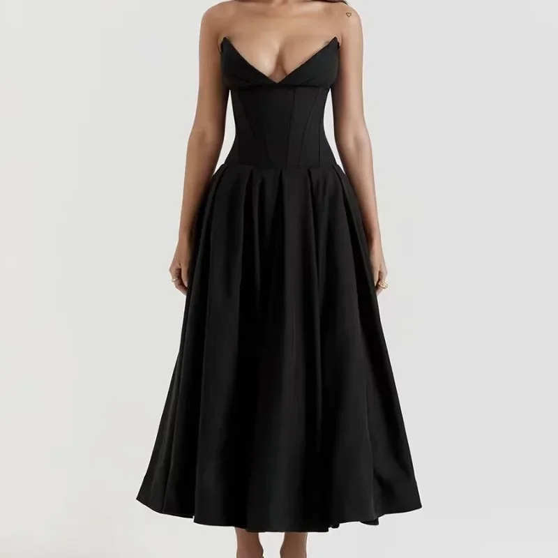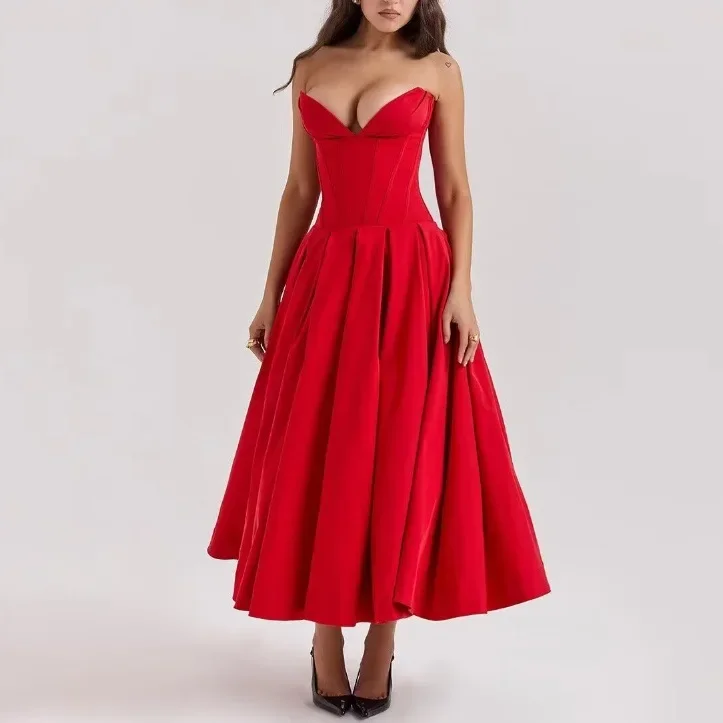 Cyflymder Cross-Border Women's Fashionable Elegant Long Dress Sexy Strapless Bone Waist-Fitted Slimming Dress Batches