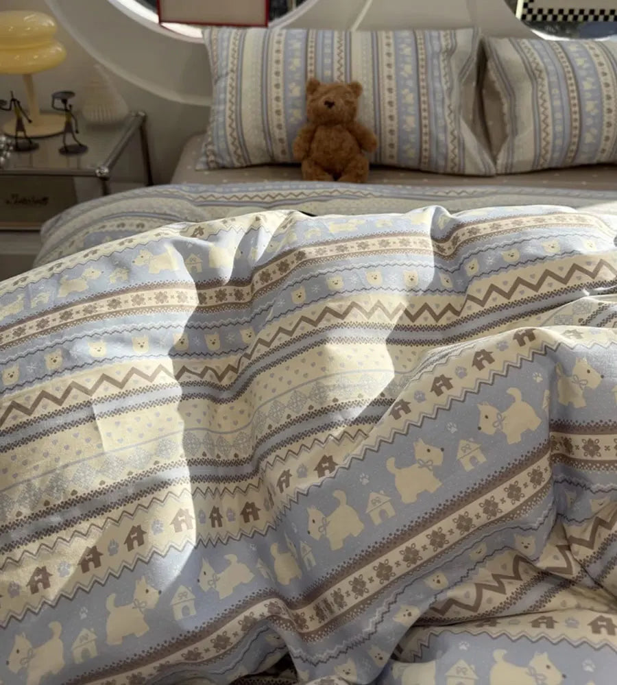 Cyflymder Cute cartoon blue dog house stripe bedding set teen,twin full queen lovely cotton home textile sheet pillow case quilt cover