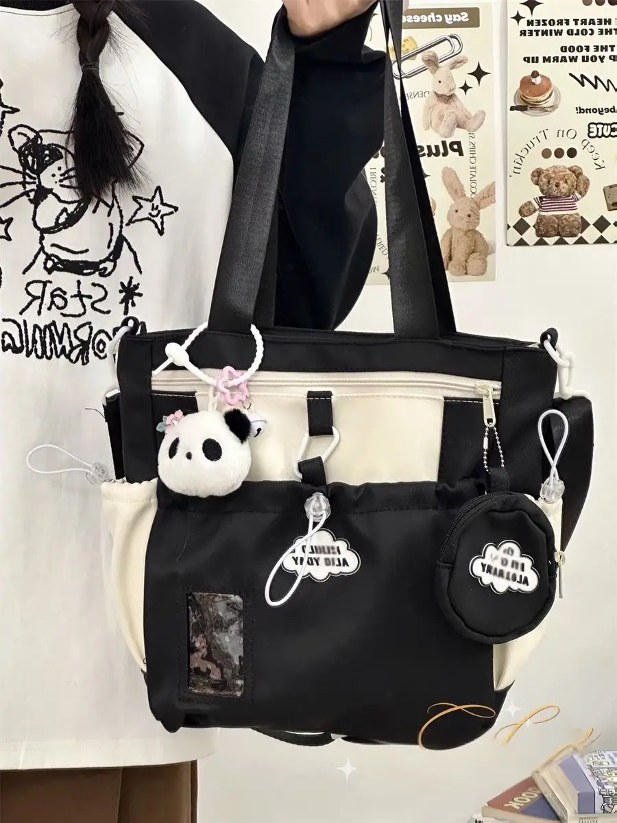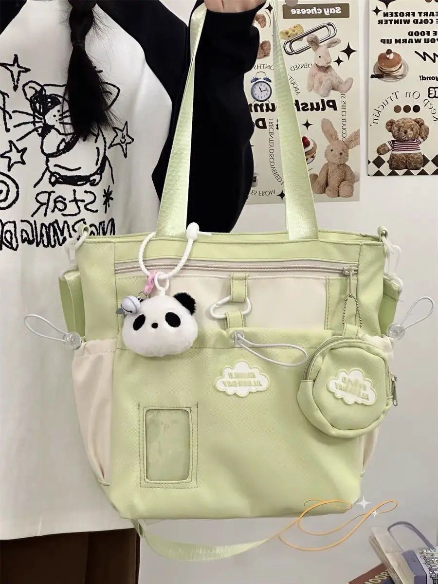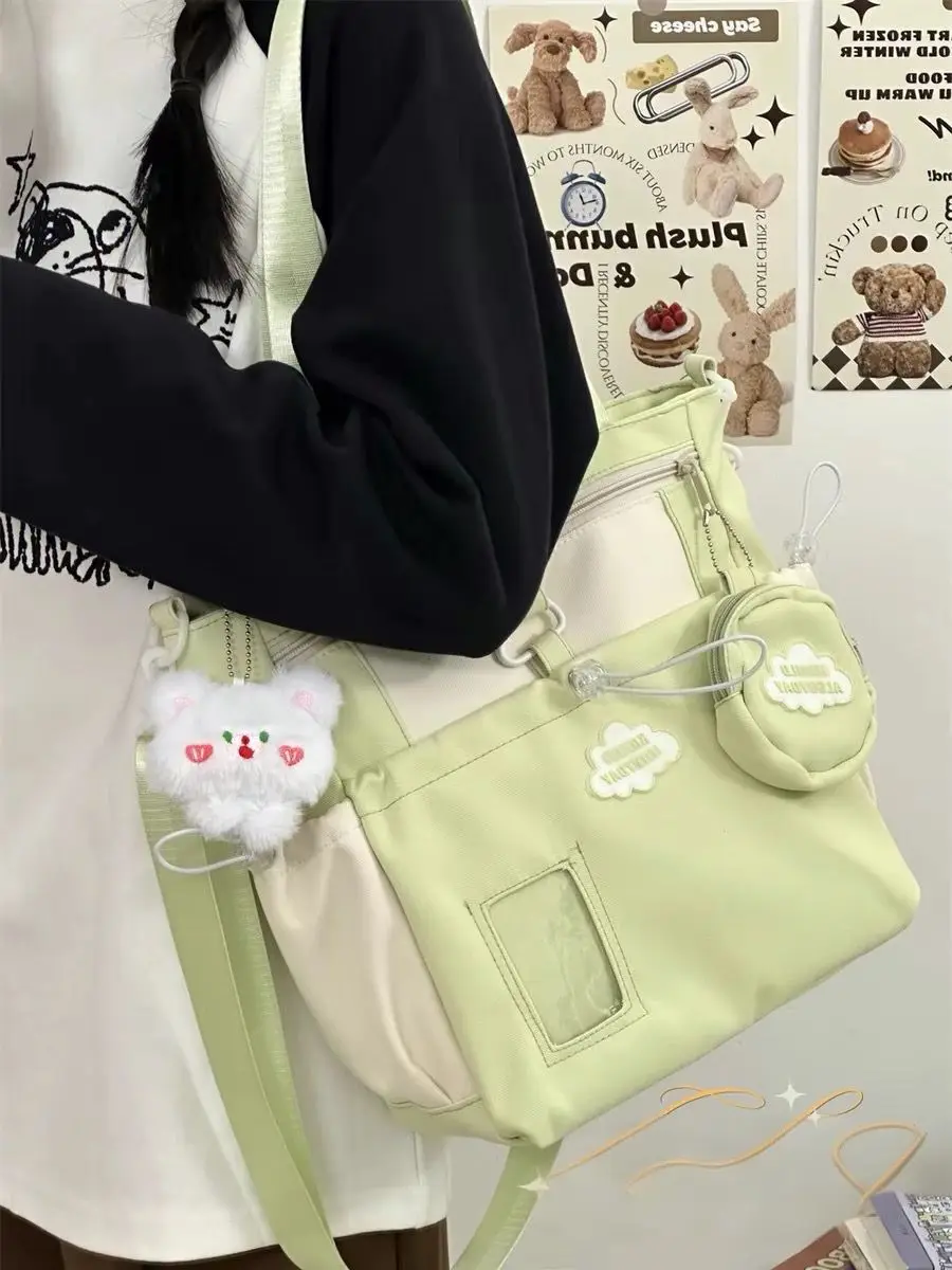 Cyflymder Cute Color-Block Fresh Style Crossbody Bag Japanese School Aesthetic Spacious Tote for Girls All-in-One Student Study Bag