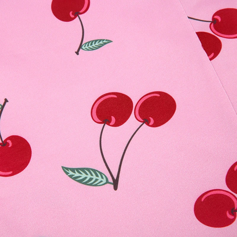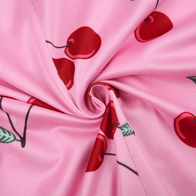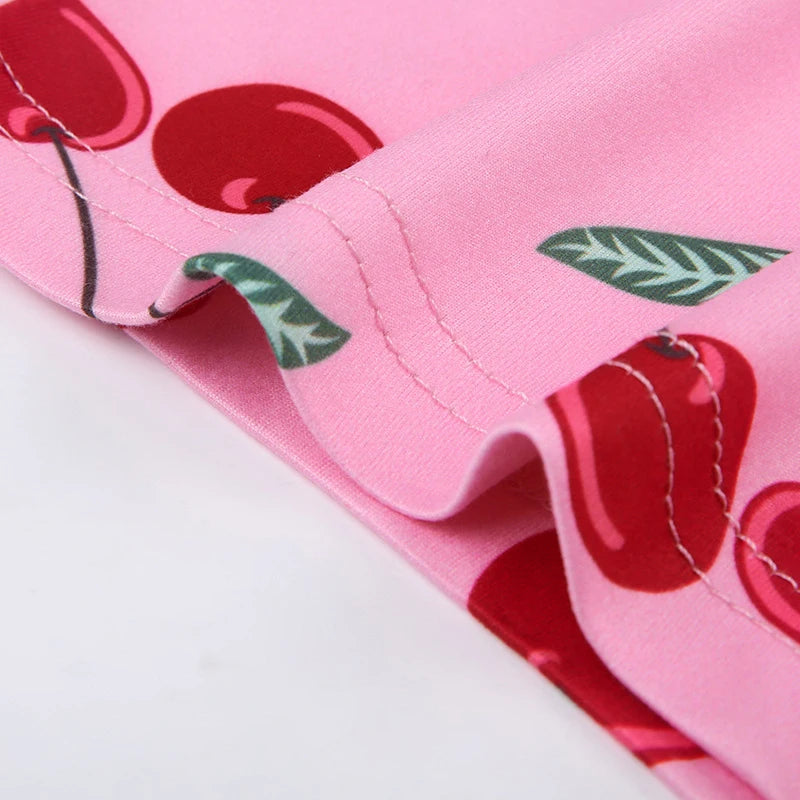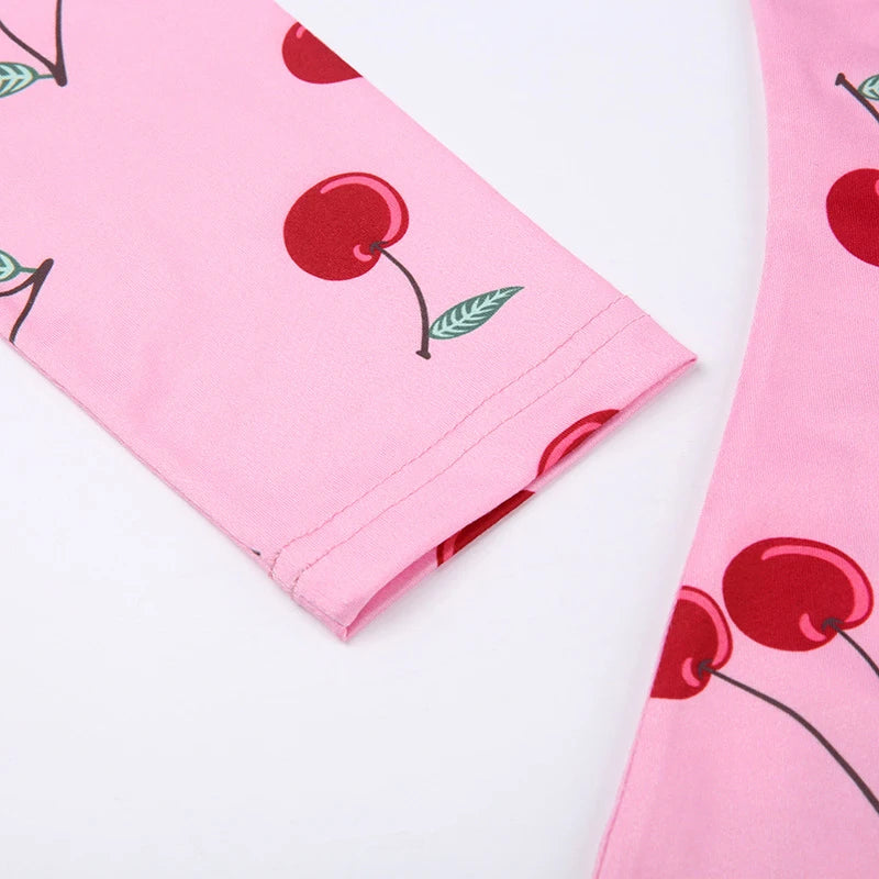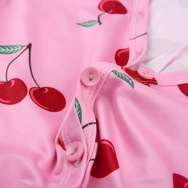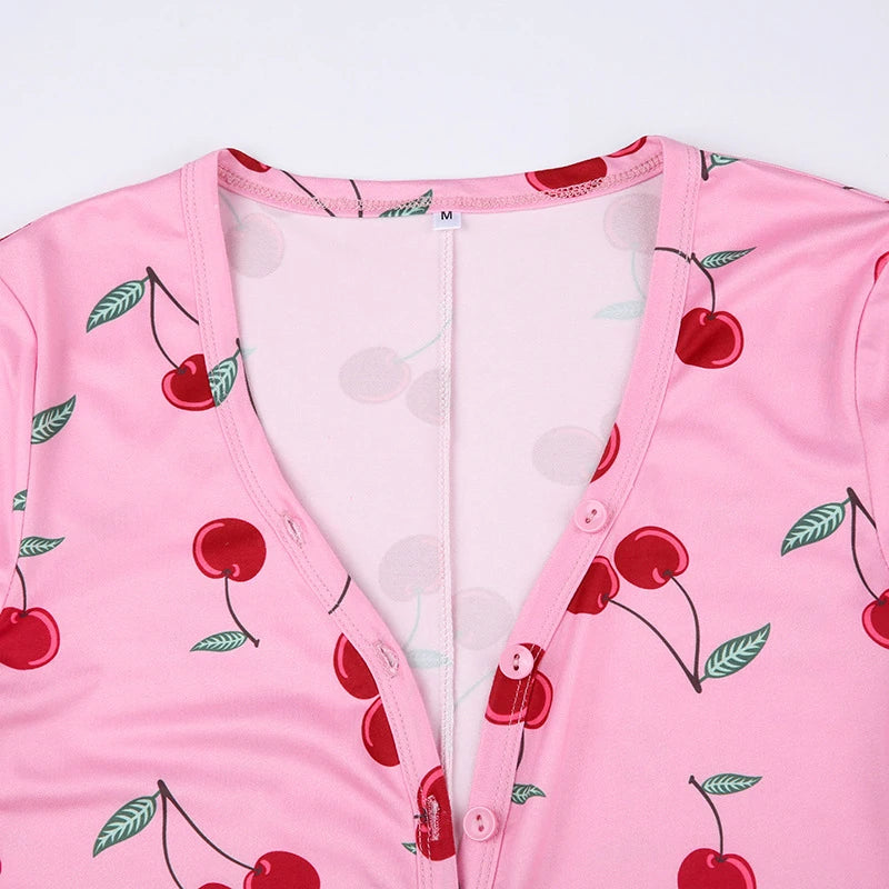 Cyflymder Cute Fruit Cherry Print Tight Fitting Long Sleeve Sexy V Neck Single-breasted Casual Home Bodysuits Sleepwear Playsuit For Women