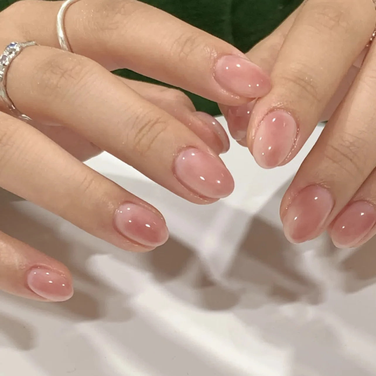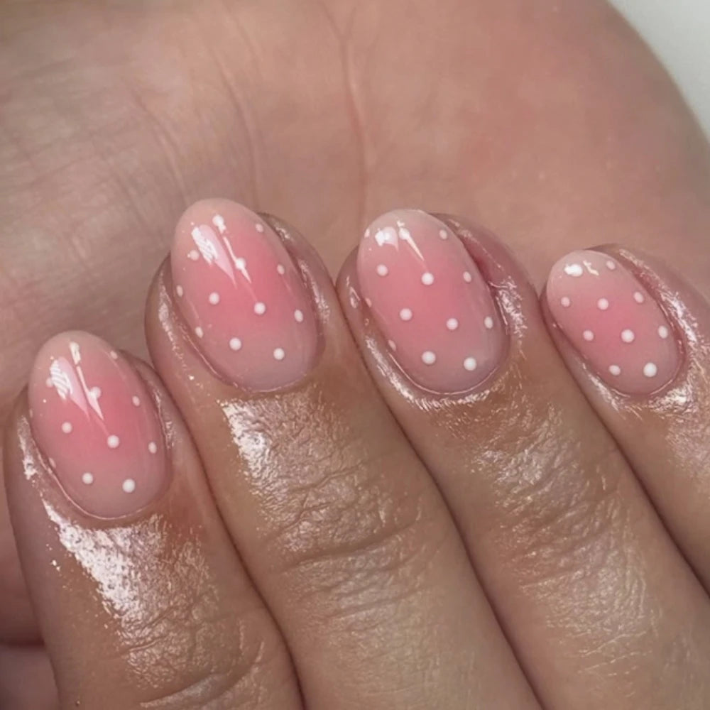 Cyflymder Cute White Polka Dot Pink Blush Short Round Nail Art Fashion Wearable Fake Nails Detachable Finished False Nails Press on Nails