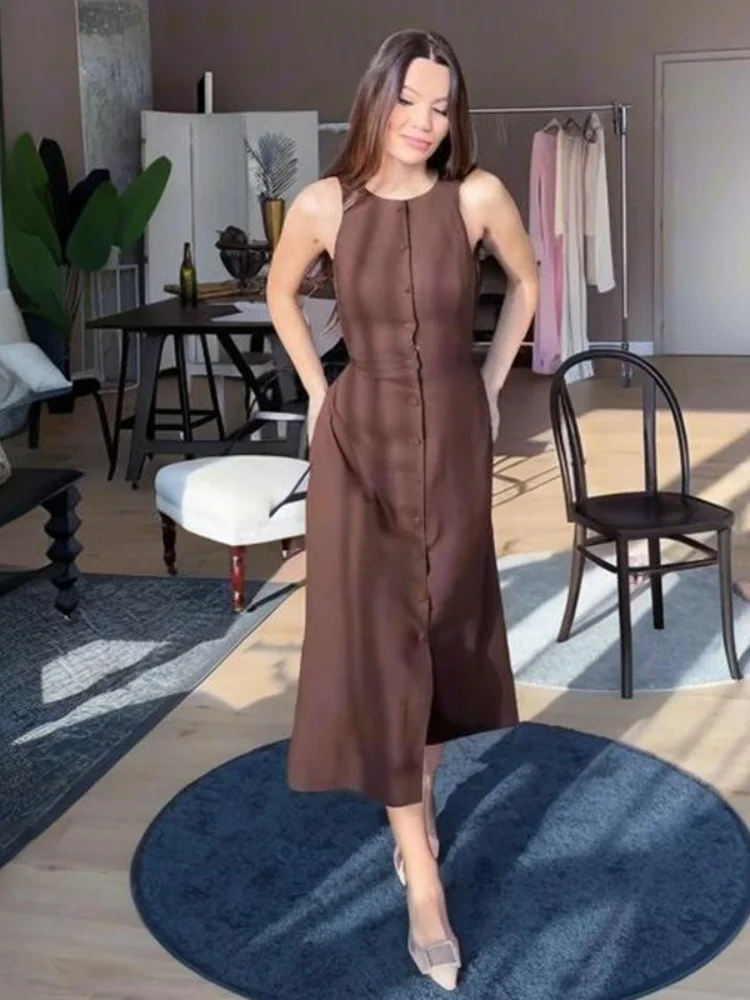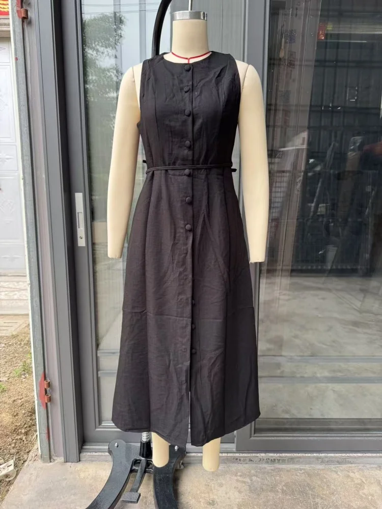 Cyflymder Dress Women Wholesale 2025 Summer New Style Cross Border Trade Sleeveless Buttons Cinched Waist Stylish Elegant Style