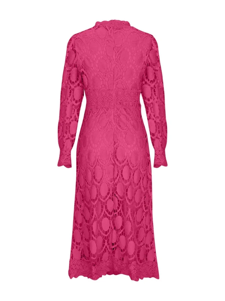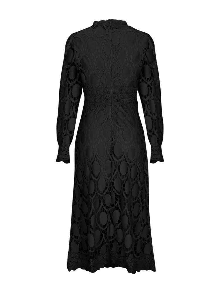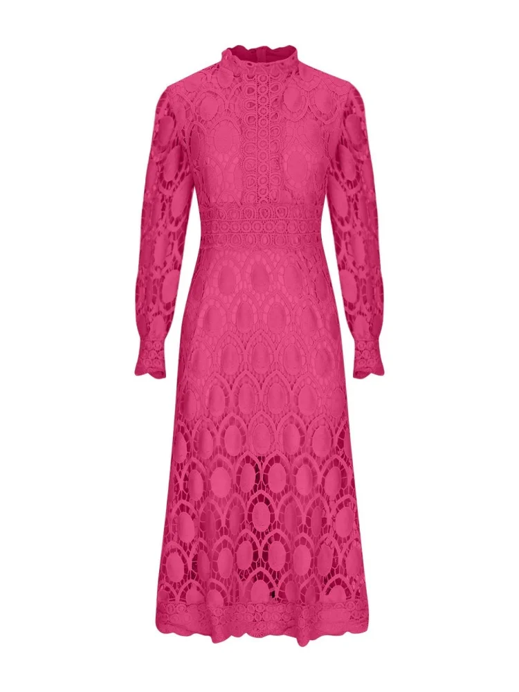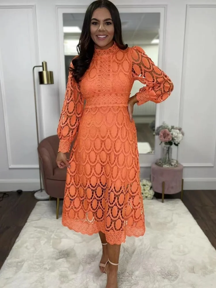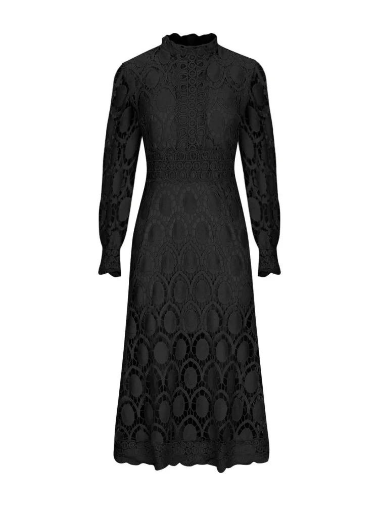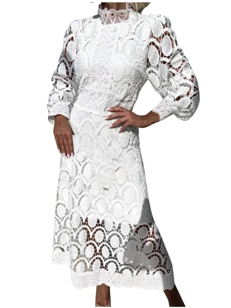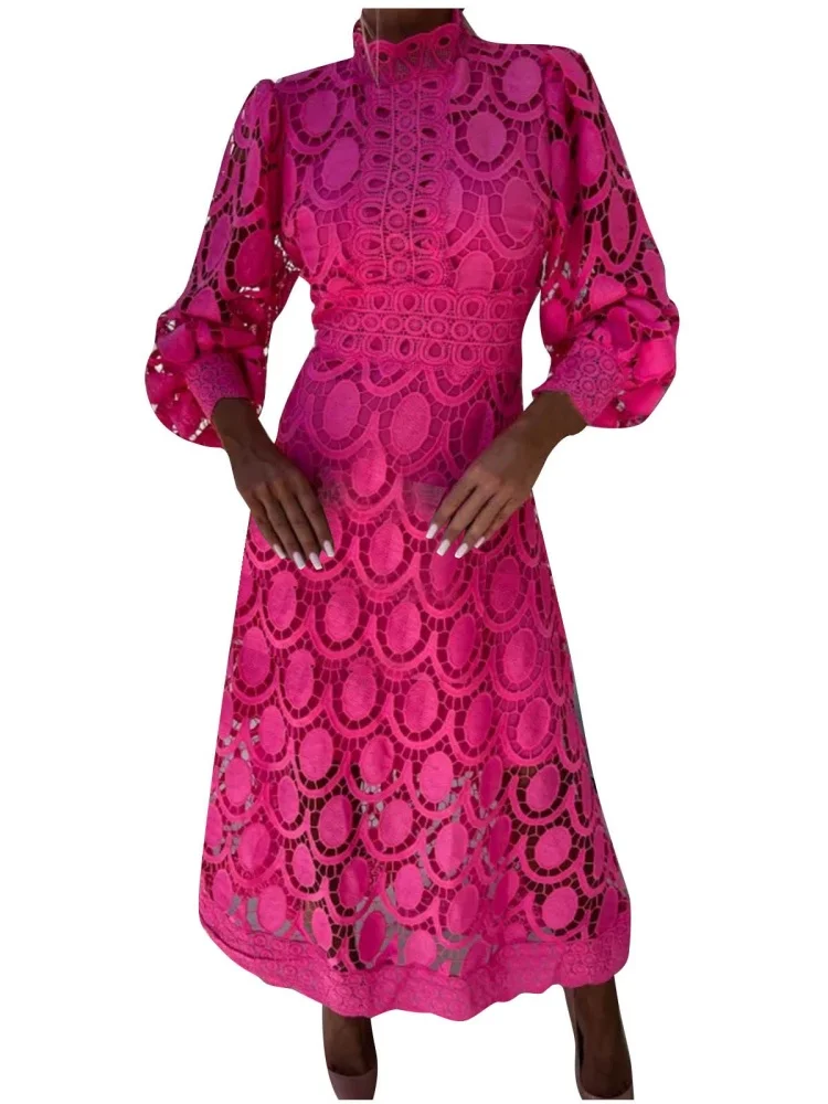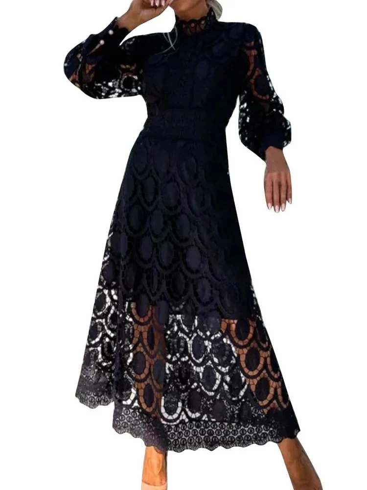 Cyflymder Dresses for Women Wholesale Sexy Long Sleeved Stand Up Collar and Large Swing Lace Trim New Fall Elegant Fashion Dress