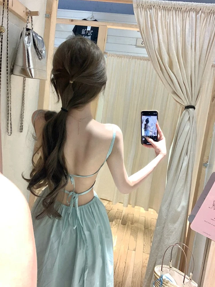 Cyflymder Dresses Women Sexy Backless Bandage Sleeveless Slash Neck Holiday Party Dress Female Temperament Ladies Elegant Princess