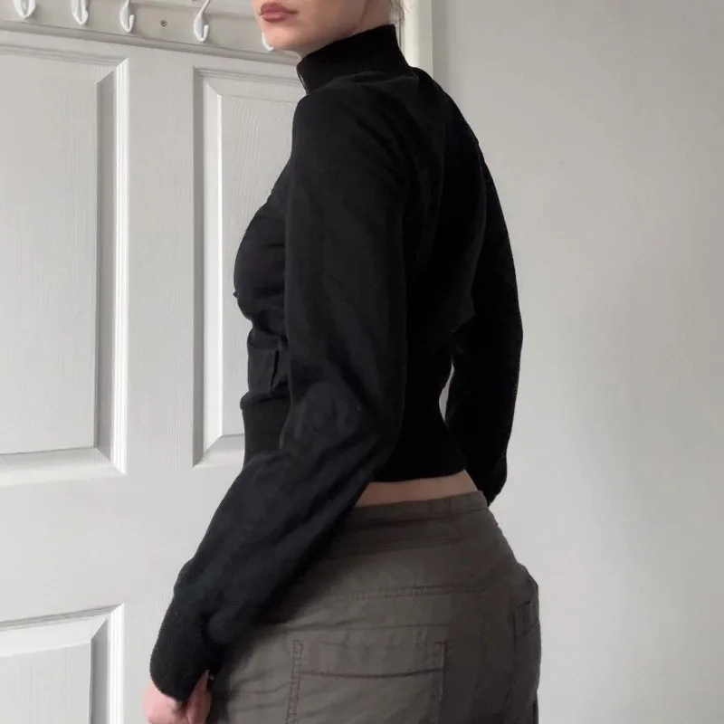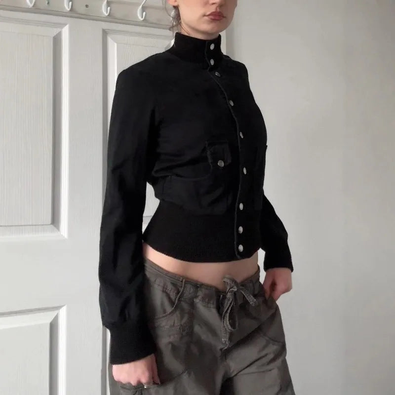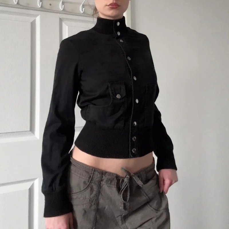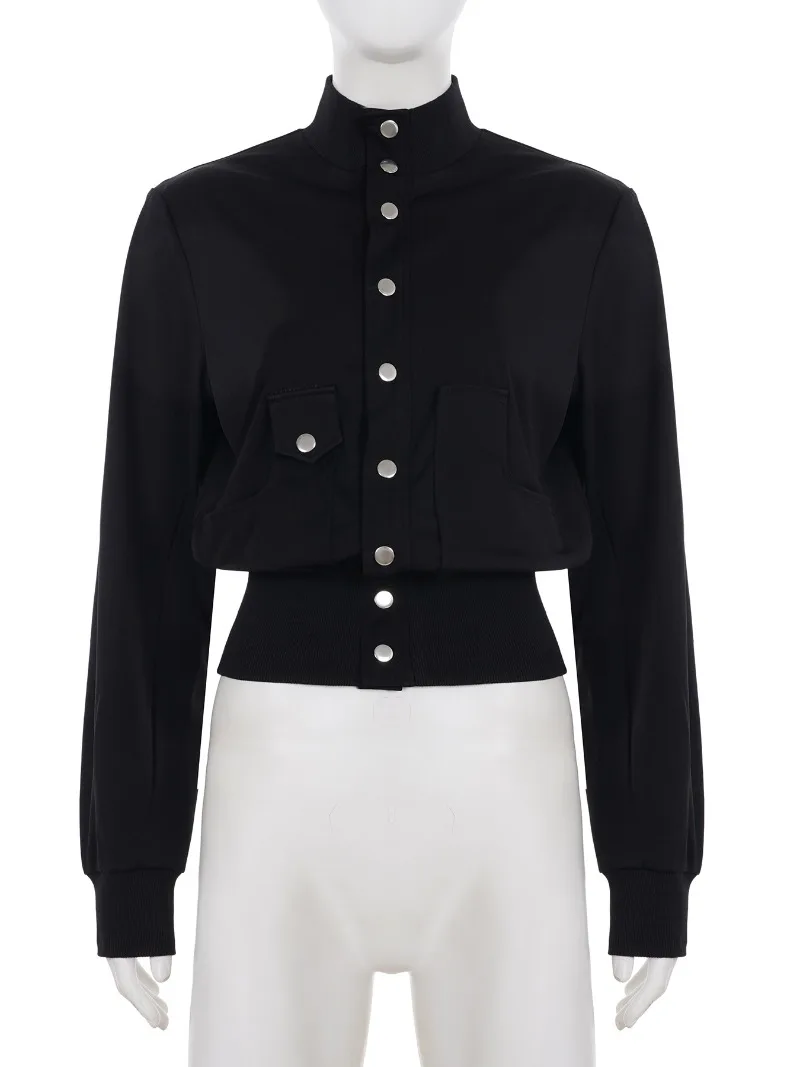 Cyflymder Early Autumn New American Safair Big Pockets Stand Collar Cardigan Y2k Spice Slim Waist Short Casual Coat Single Breasted Jacket