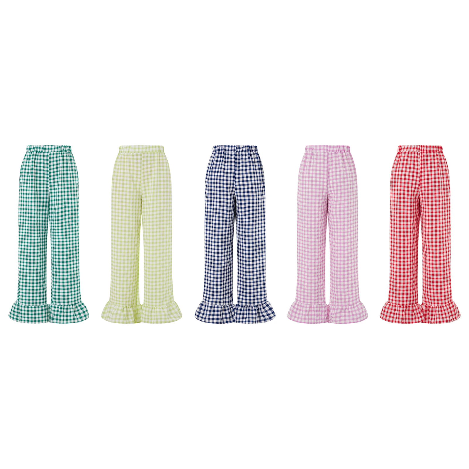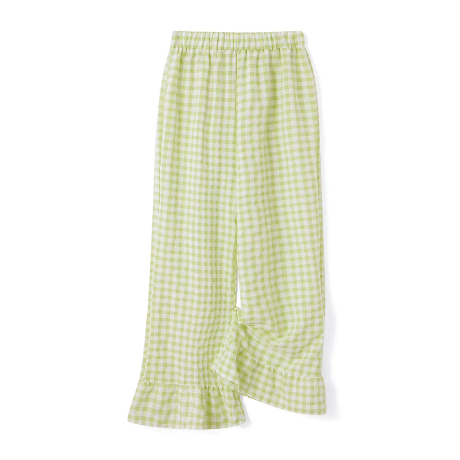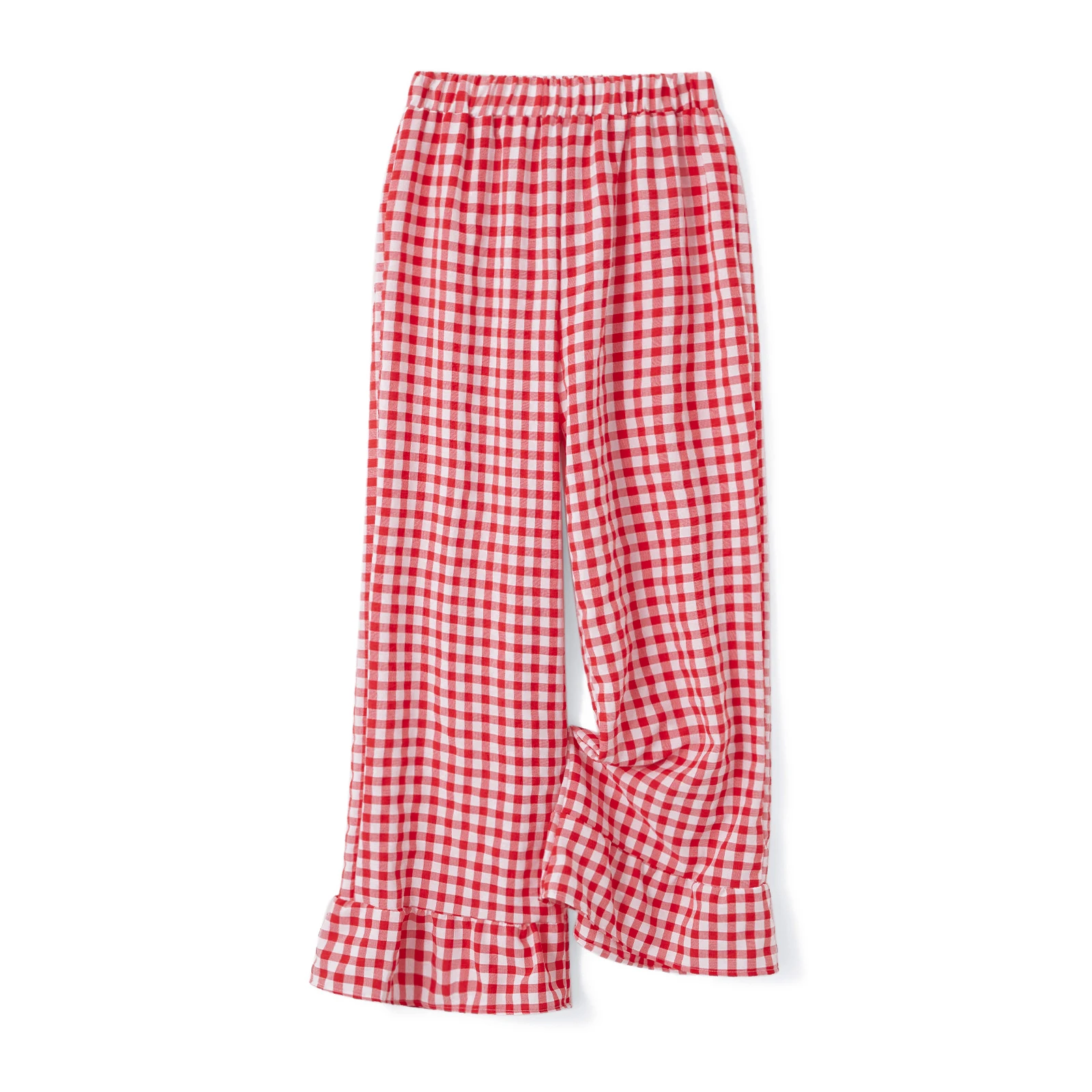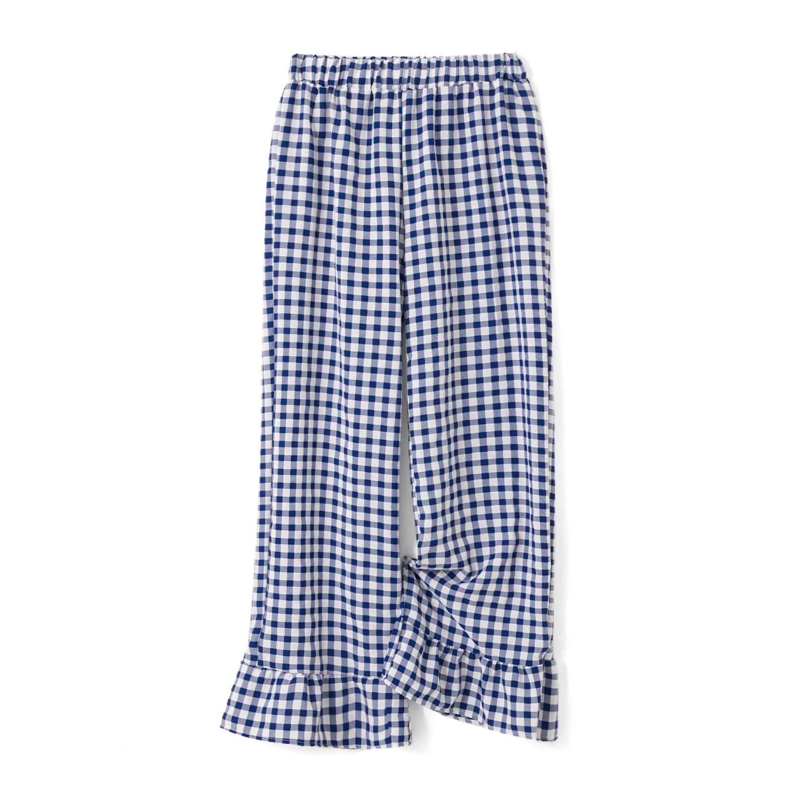 Cyflymder Elastic Waist Casual Ruffled Hem Wide Legs Pants for Women Summer Fall Plaid Loose Long Trousers for Streetwear Lounge Bottoms