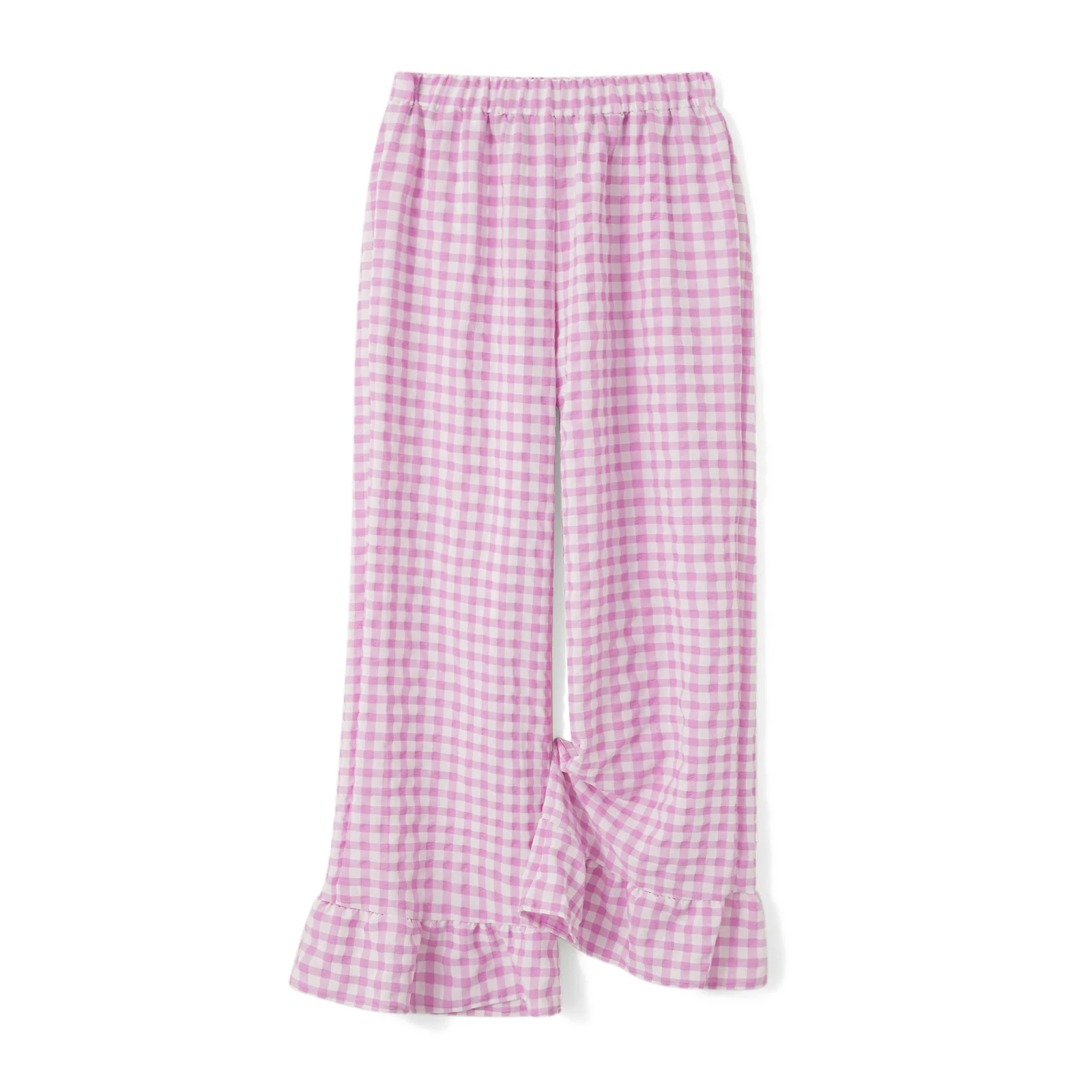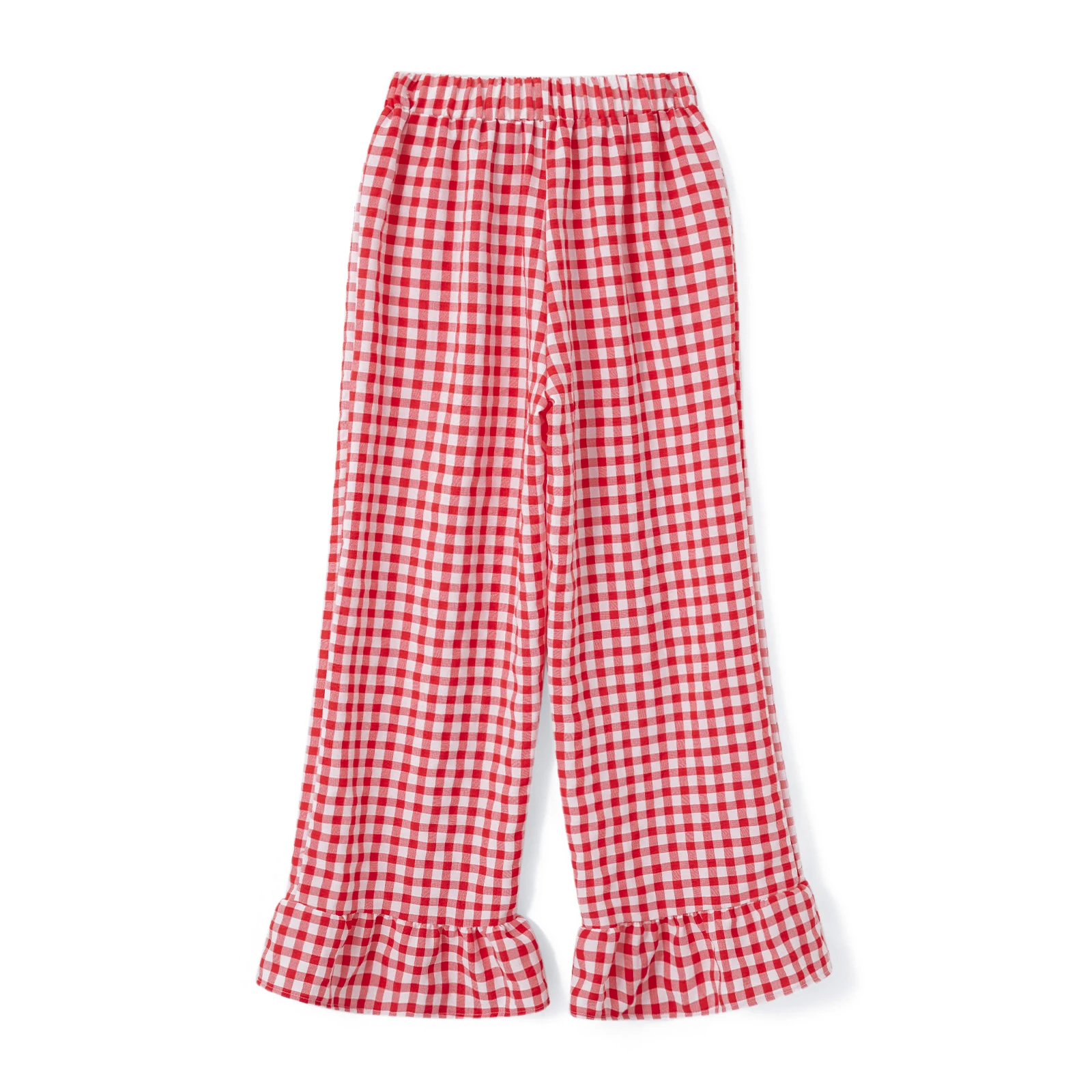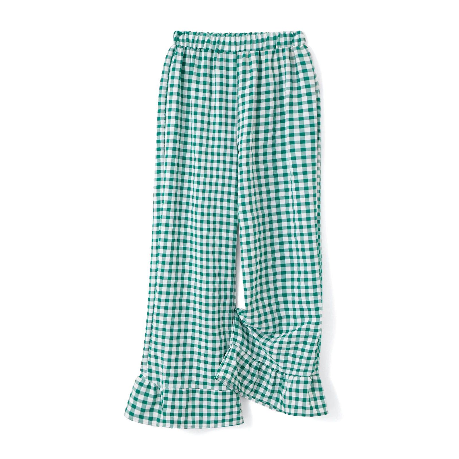 Cyflymder Elastic Waist Casual Ruffled Hem Wide Legs Pants for Women Summer Fall Plaid Loose Long Trousers for Streetwear Lounge Bottoms