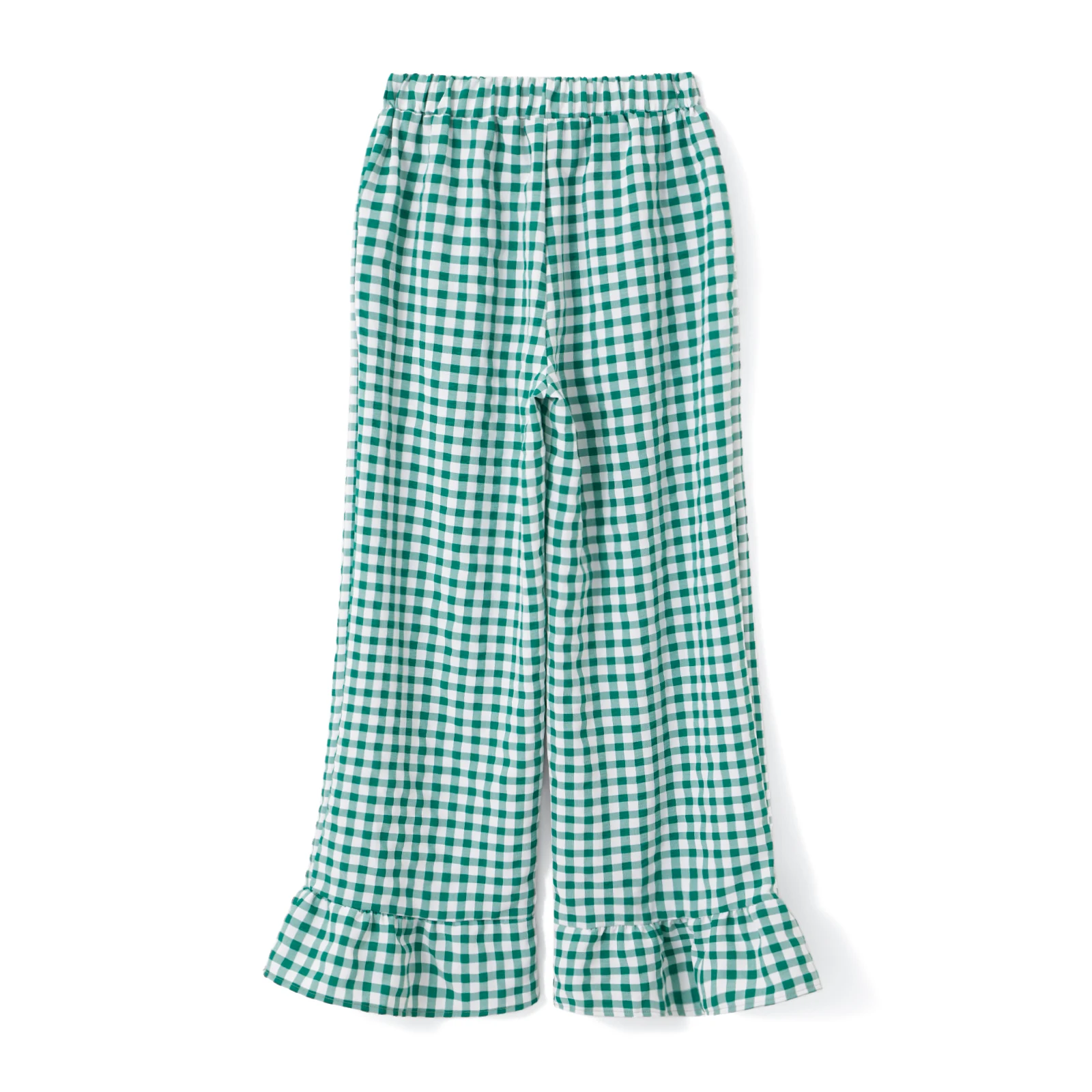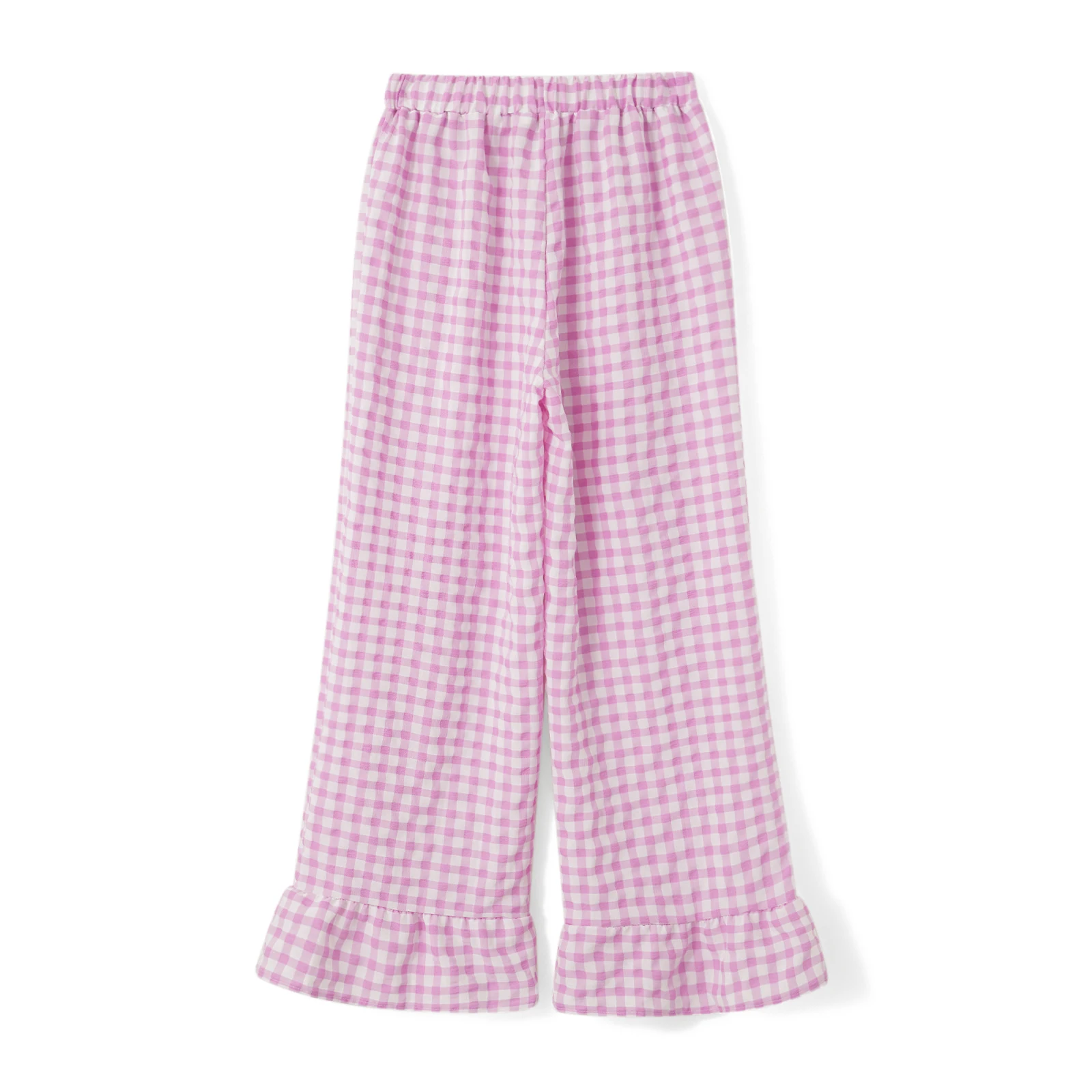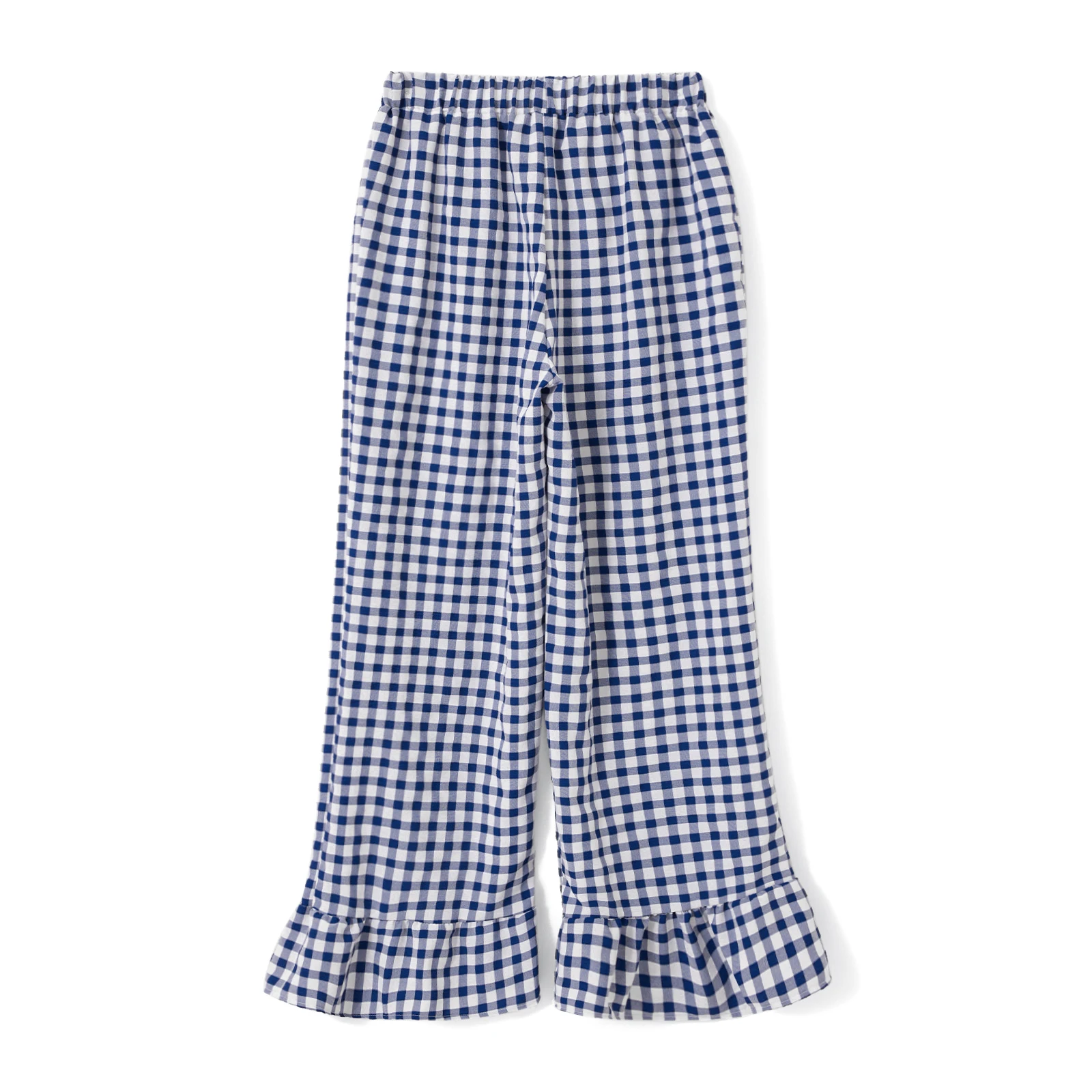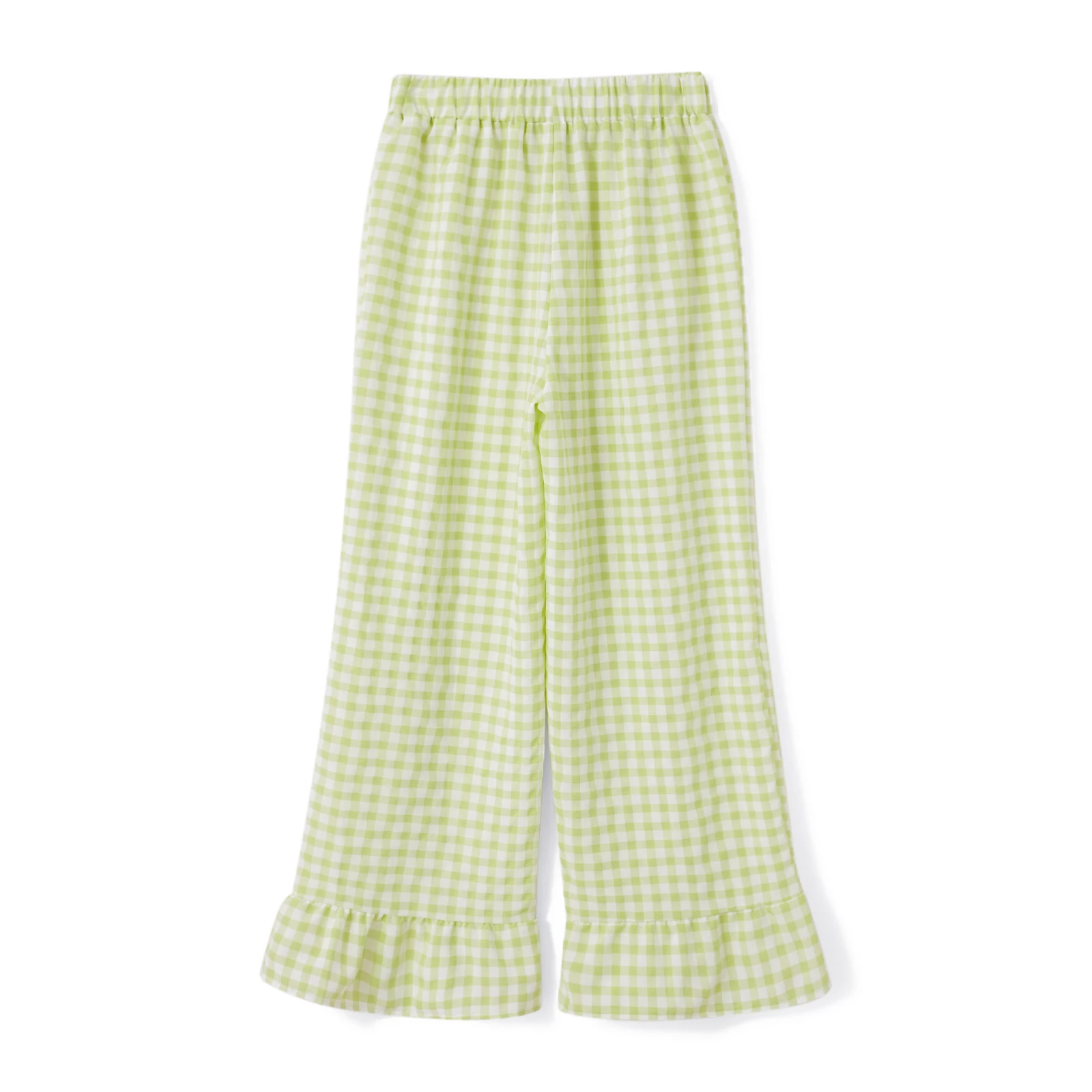 Cyflymder Elastic Waist Casual Ruffled Hem Wide Legs Pants for Women Summer Fall Plaid Loose Long Trousers for Streetwear Lounge Bottoms